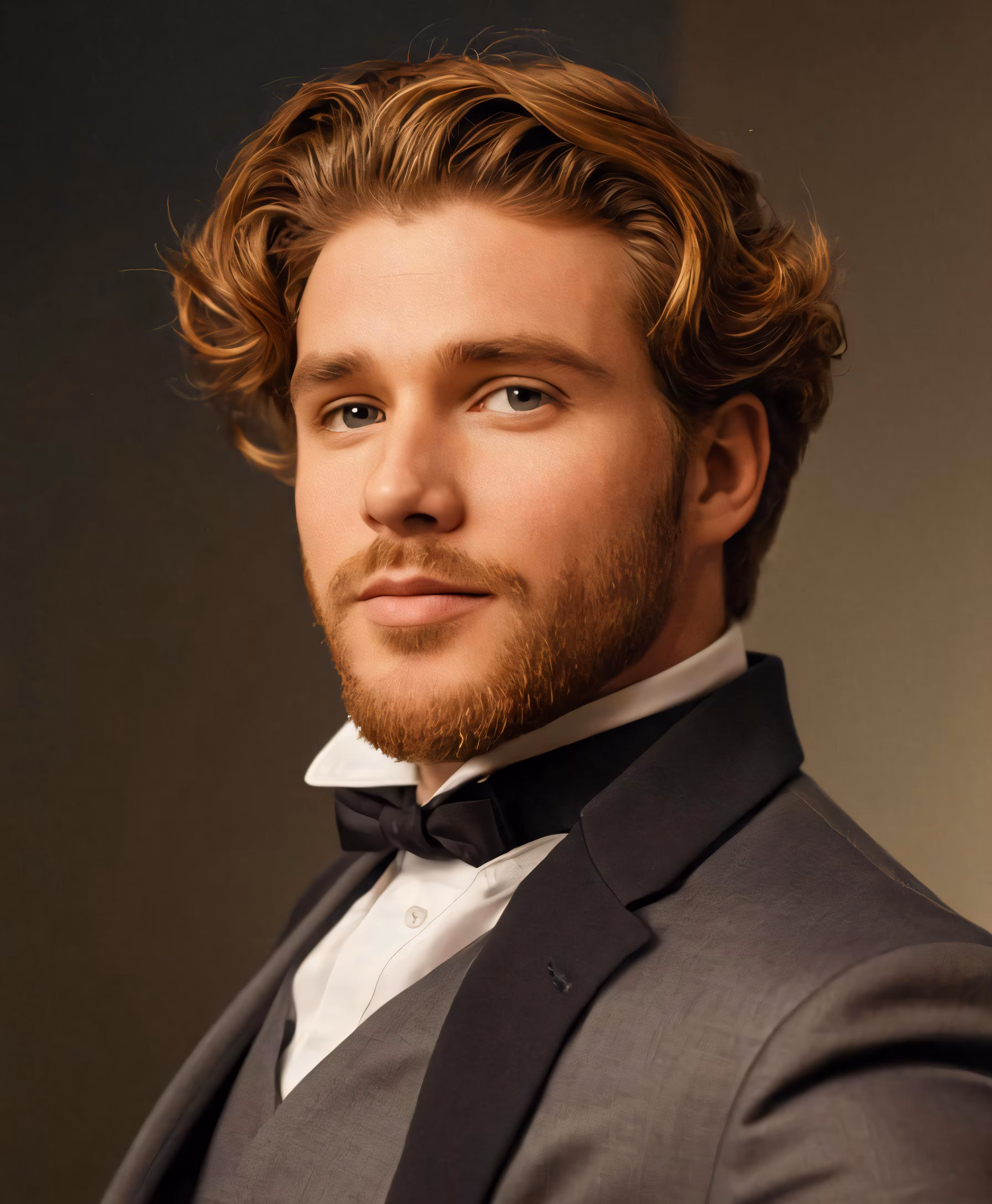 High resolution picture, free to use, man with curly hair and beard wearing a suit
