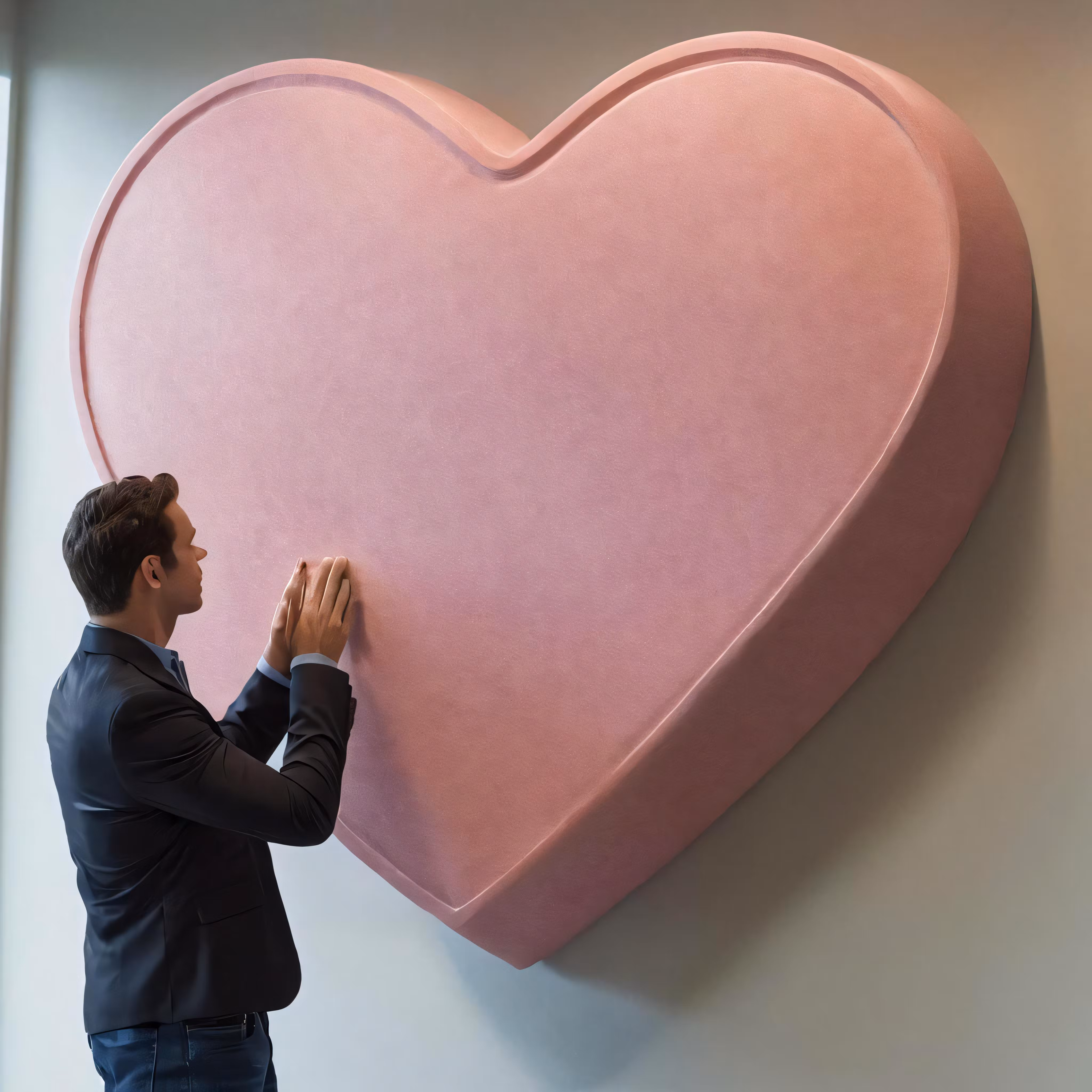 High resolution picture, free to use, man with hands on wall shaped like a heart