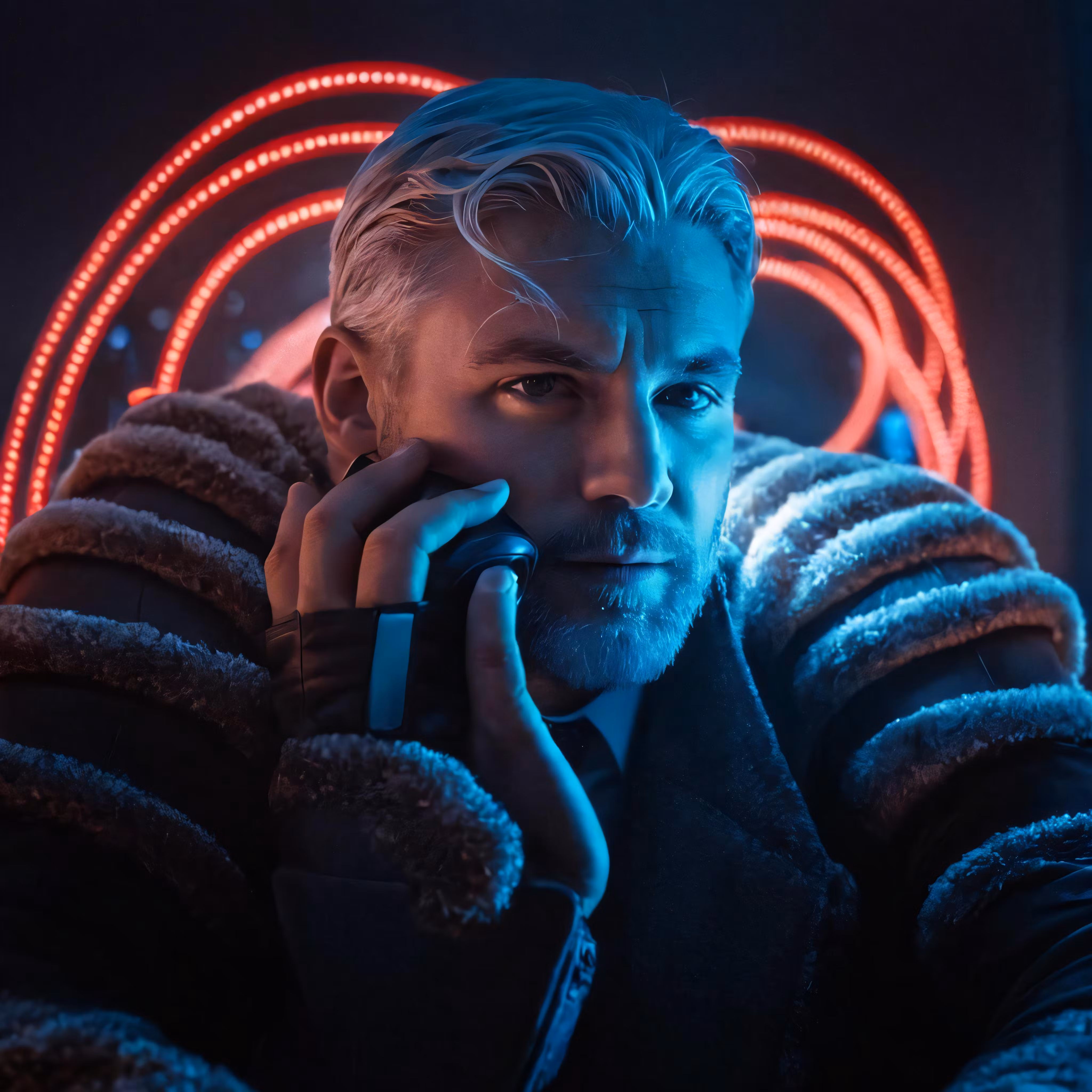 High resolution picture, free to use, man with white hair holding finger to his chin