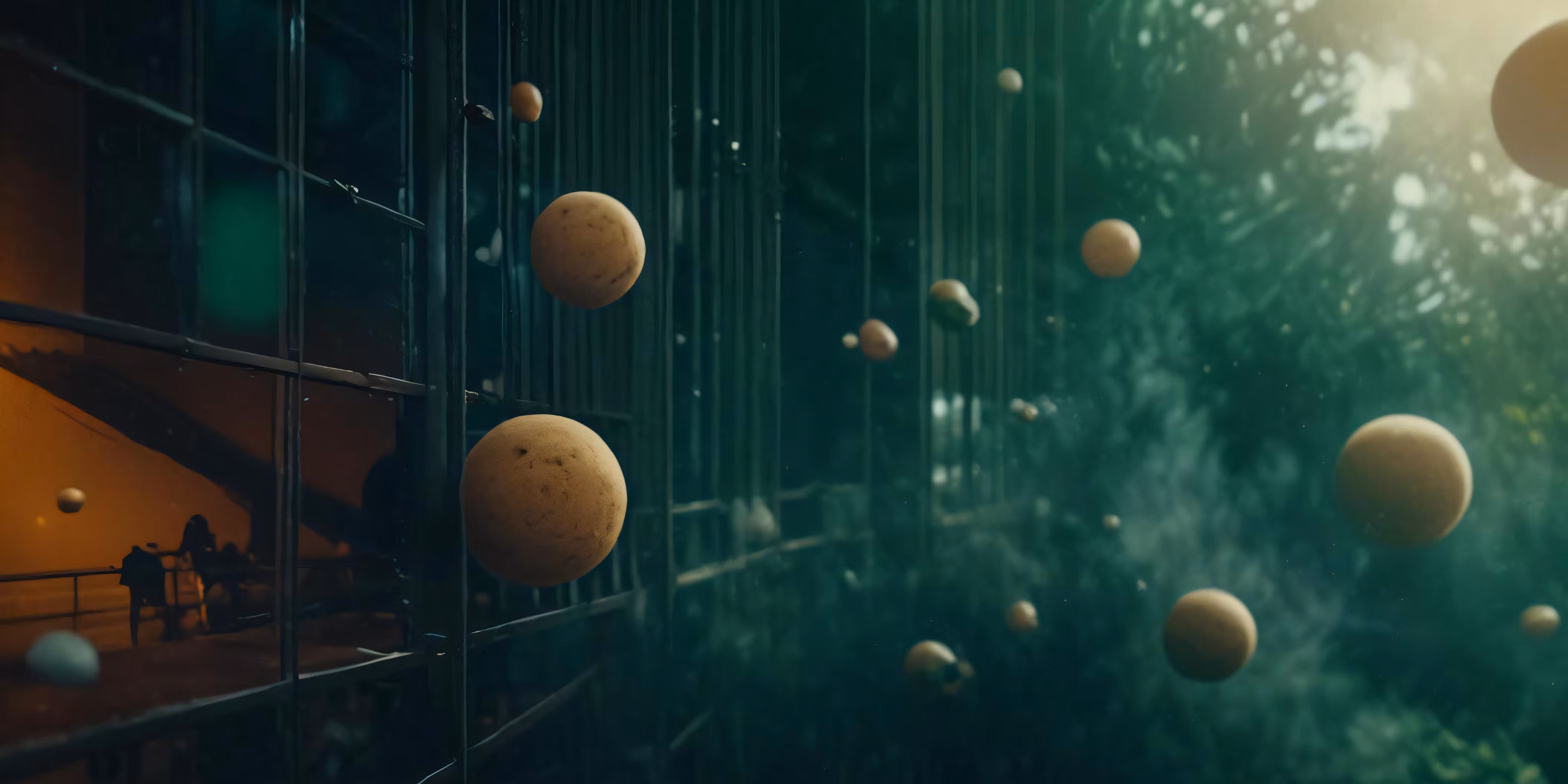 High resolution picture, free to use, many balls that are suspended from the ceiling