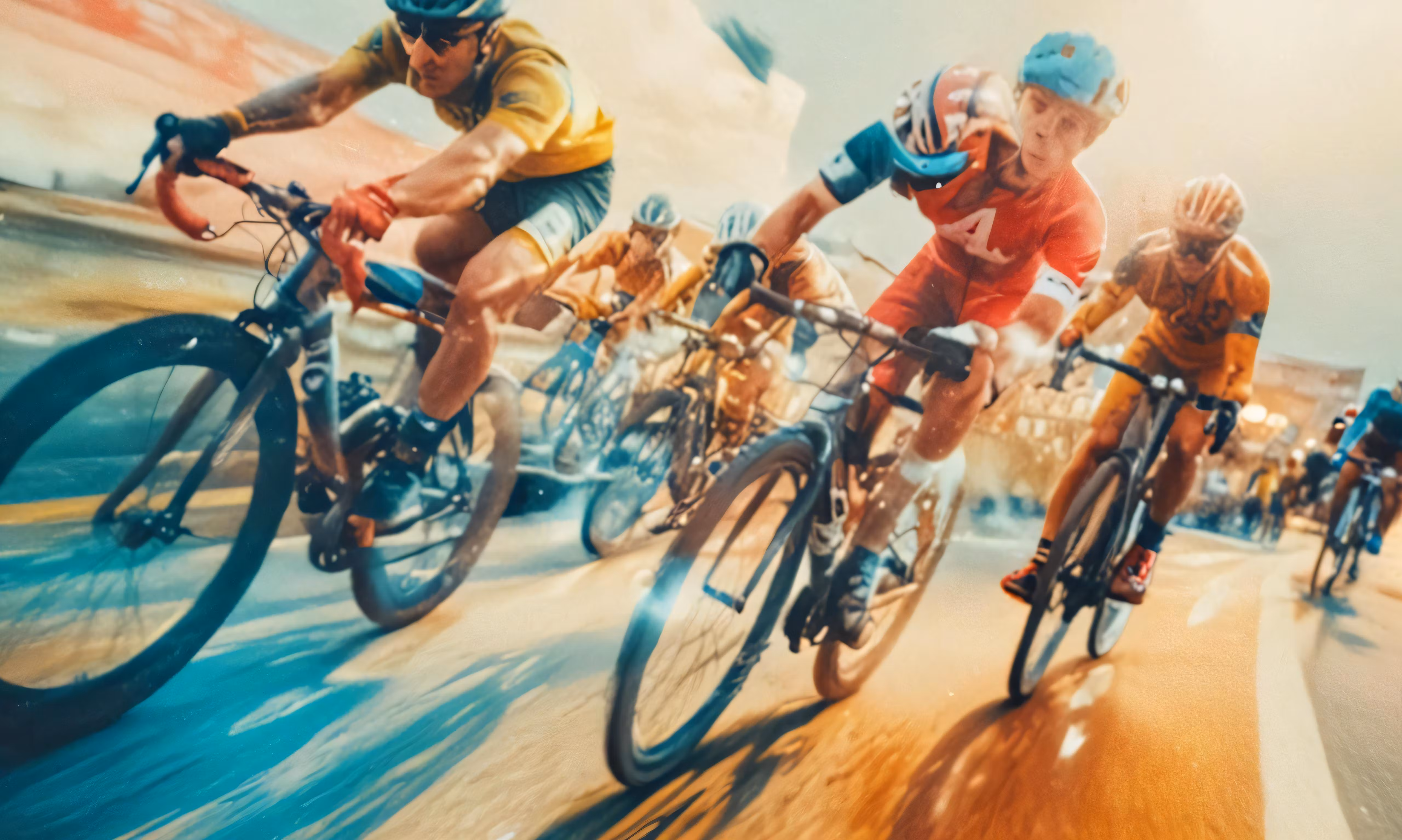 High resolution picture, free to use, many cyclists are racing their bikes on the street