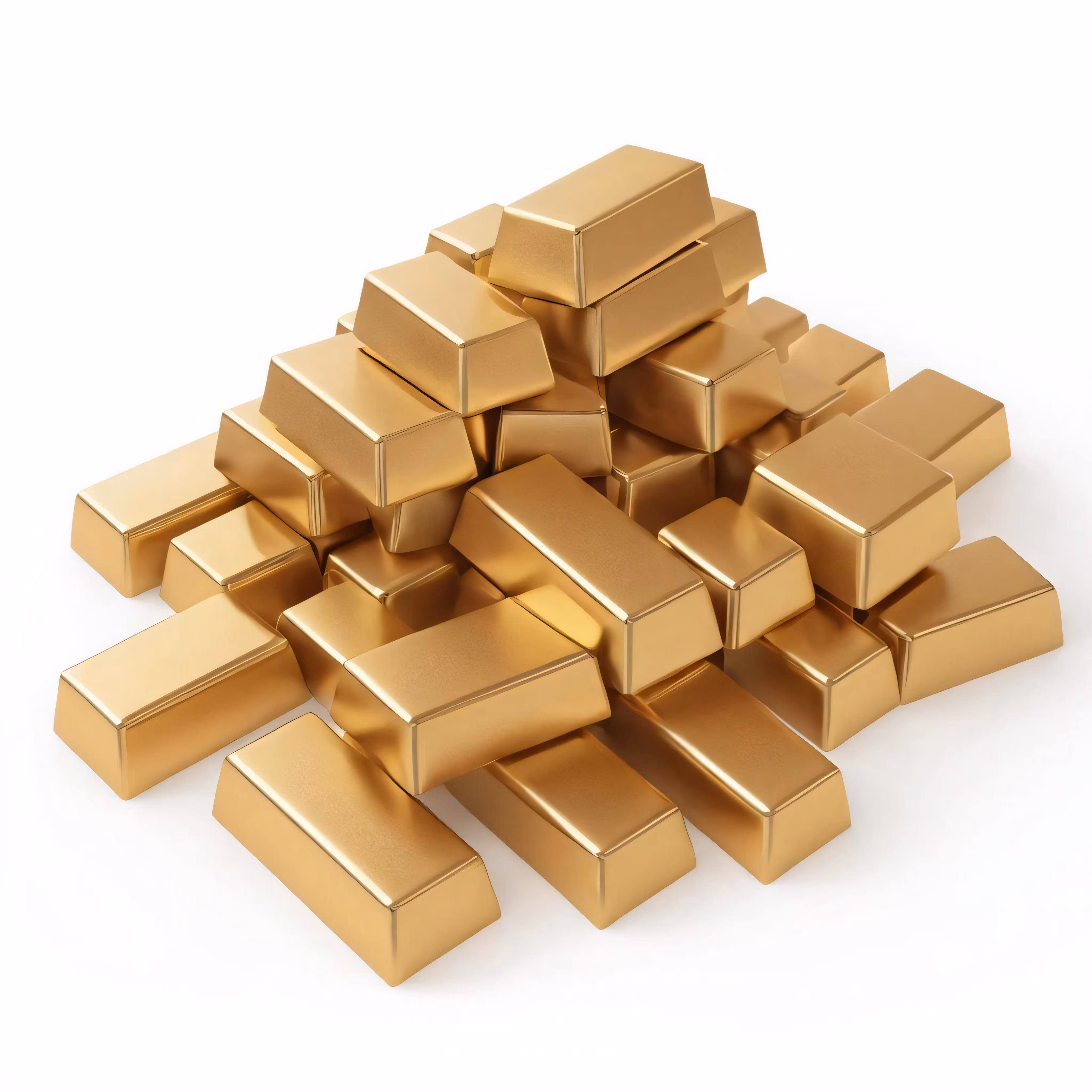 High resolution picture, free to use, many gold bars are stacked in neat piles