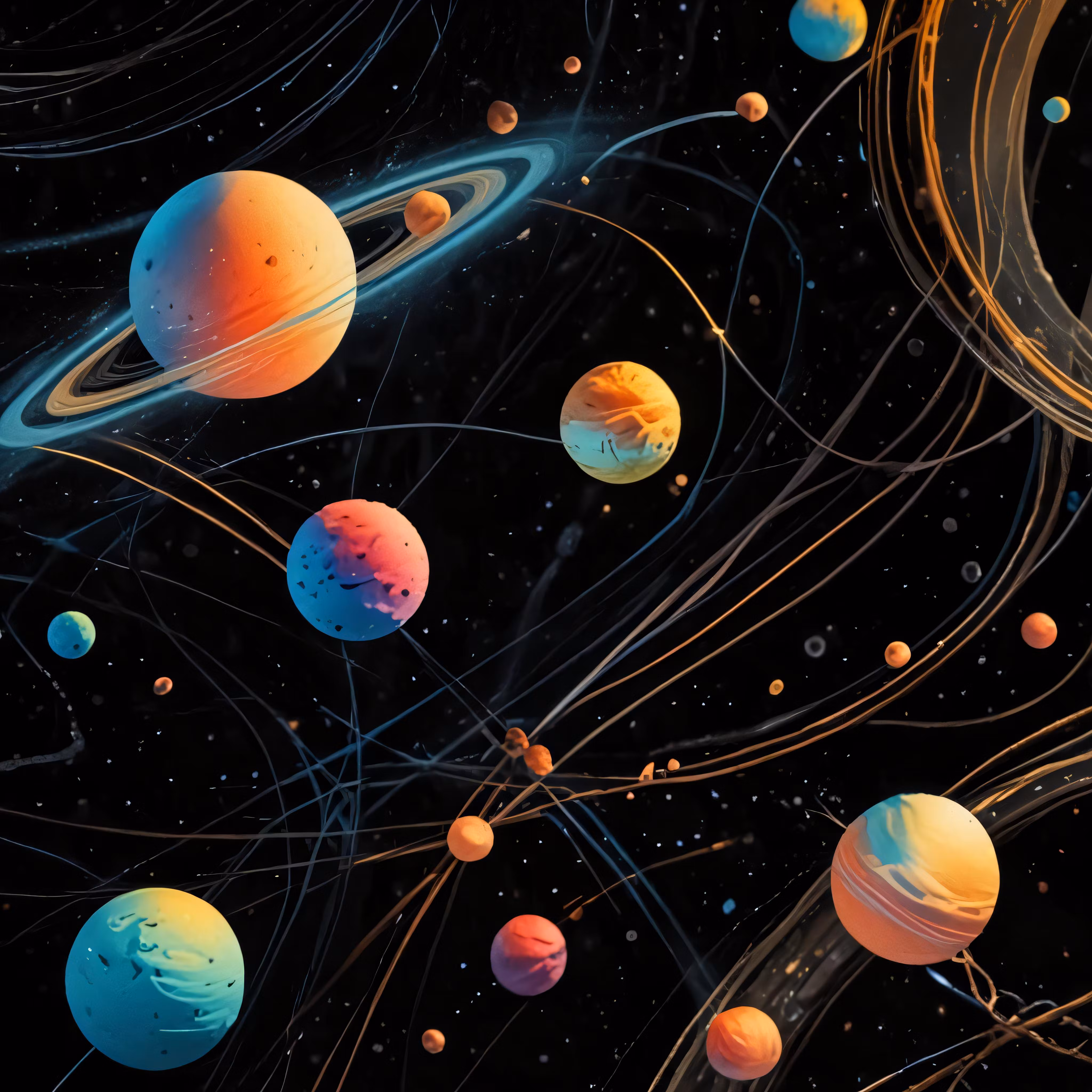 High resolution picture, free to use, many saturns are seen, with other planets in the background
