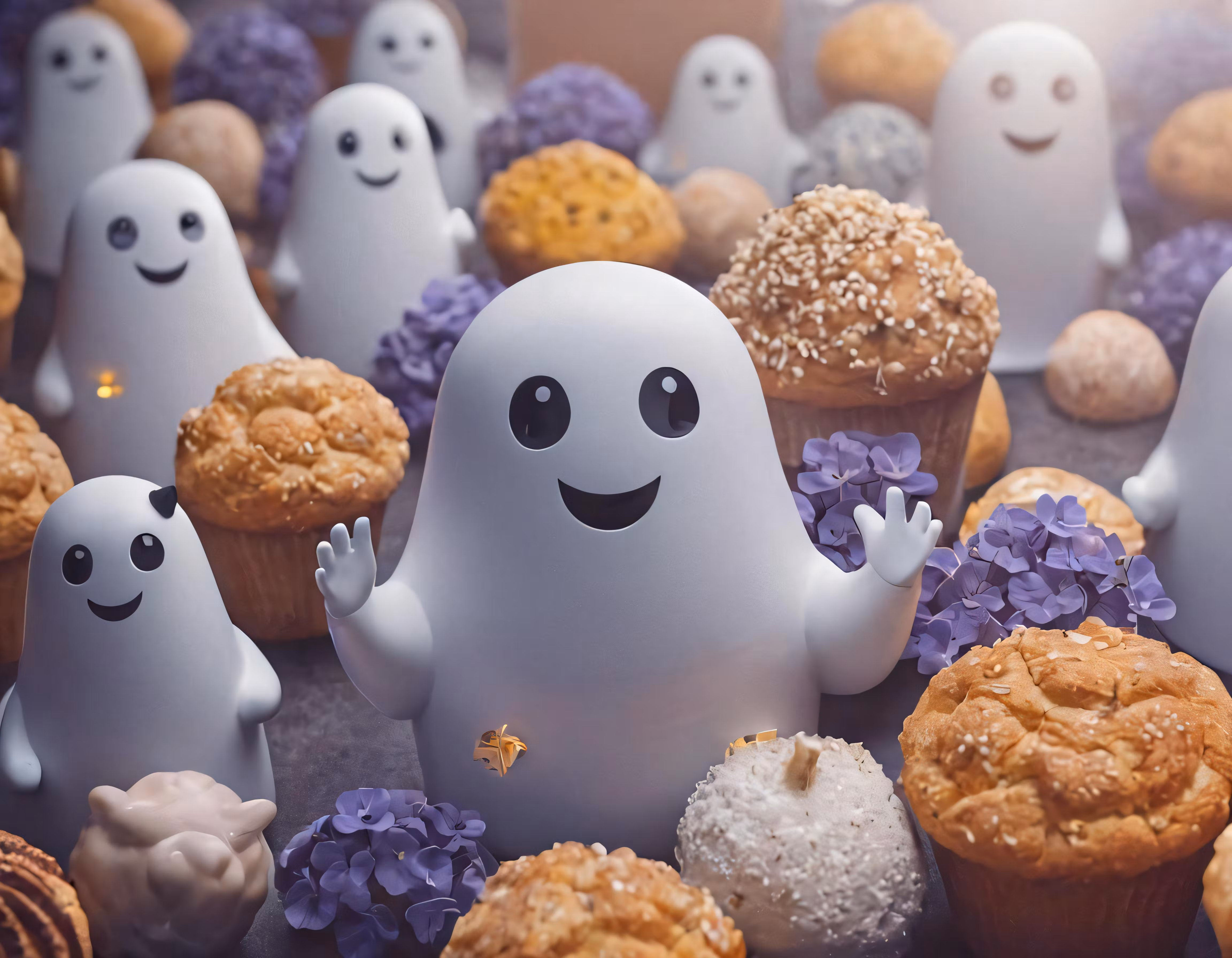High resolution picture, free to use, many small little monsters around a muffin