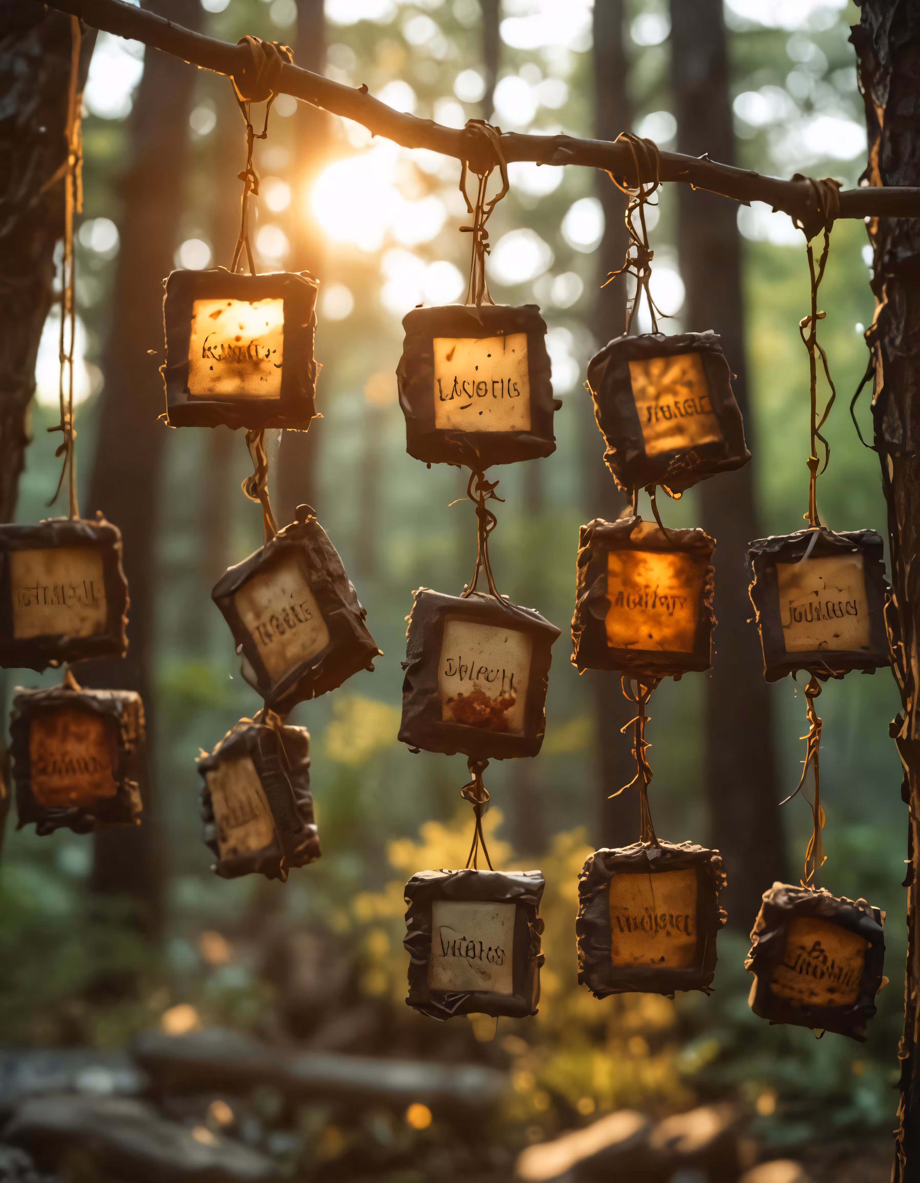 High resolution picture, free to use, many small squares of tags hanging on a tree