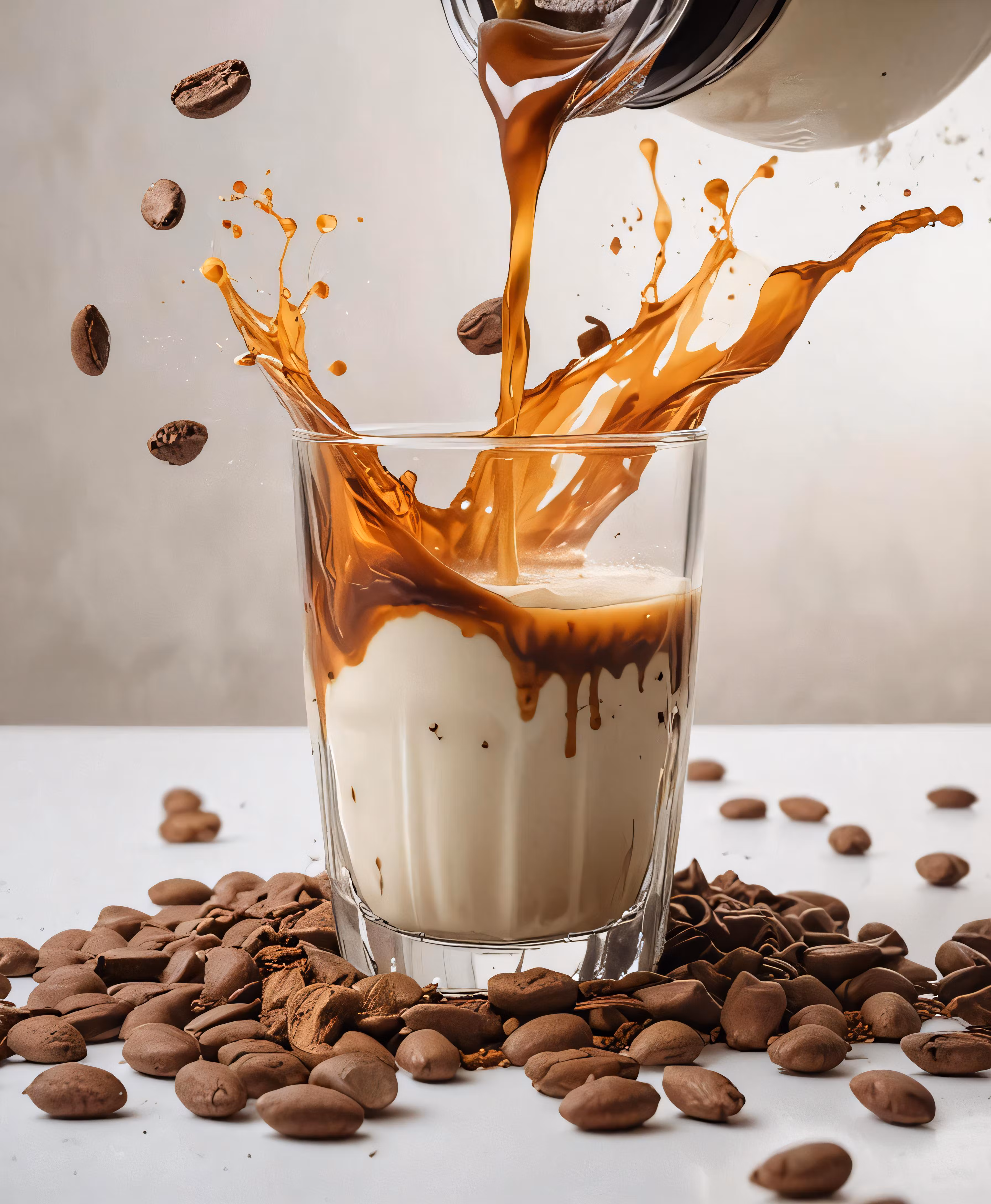 High resolution picture, free to use, milk being poured into chocolate and coffee beans