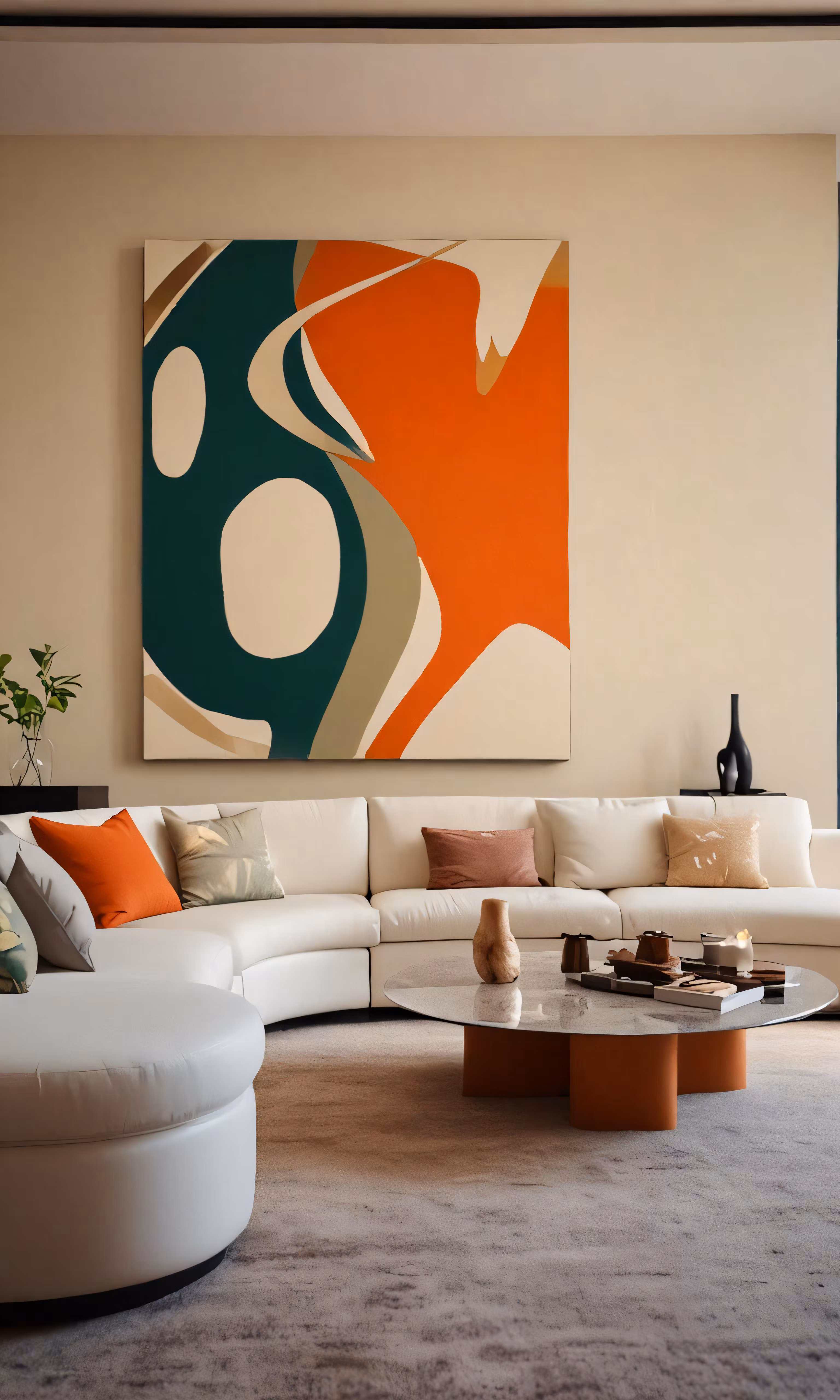 High resolution picture, free to use, modern living room with couch, table and artwork