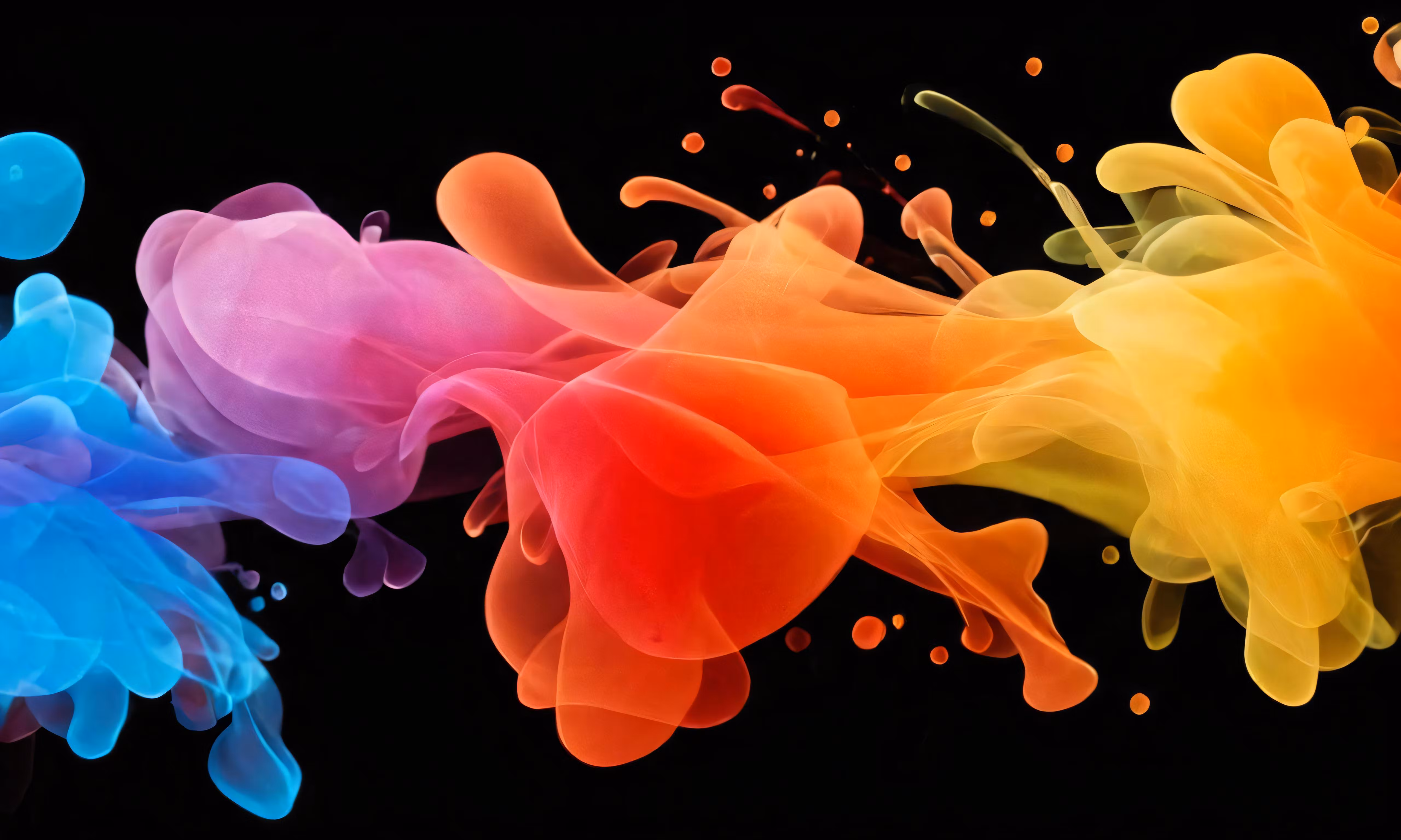 High resolution picture, free to use, multi   colored ink floats in the dark with different colors