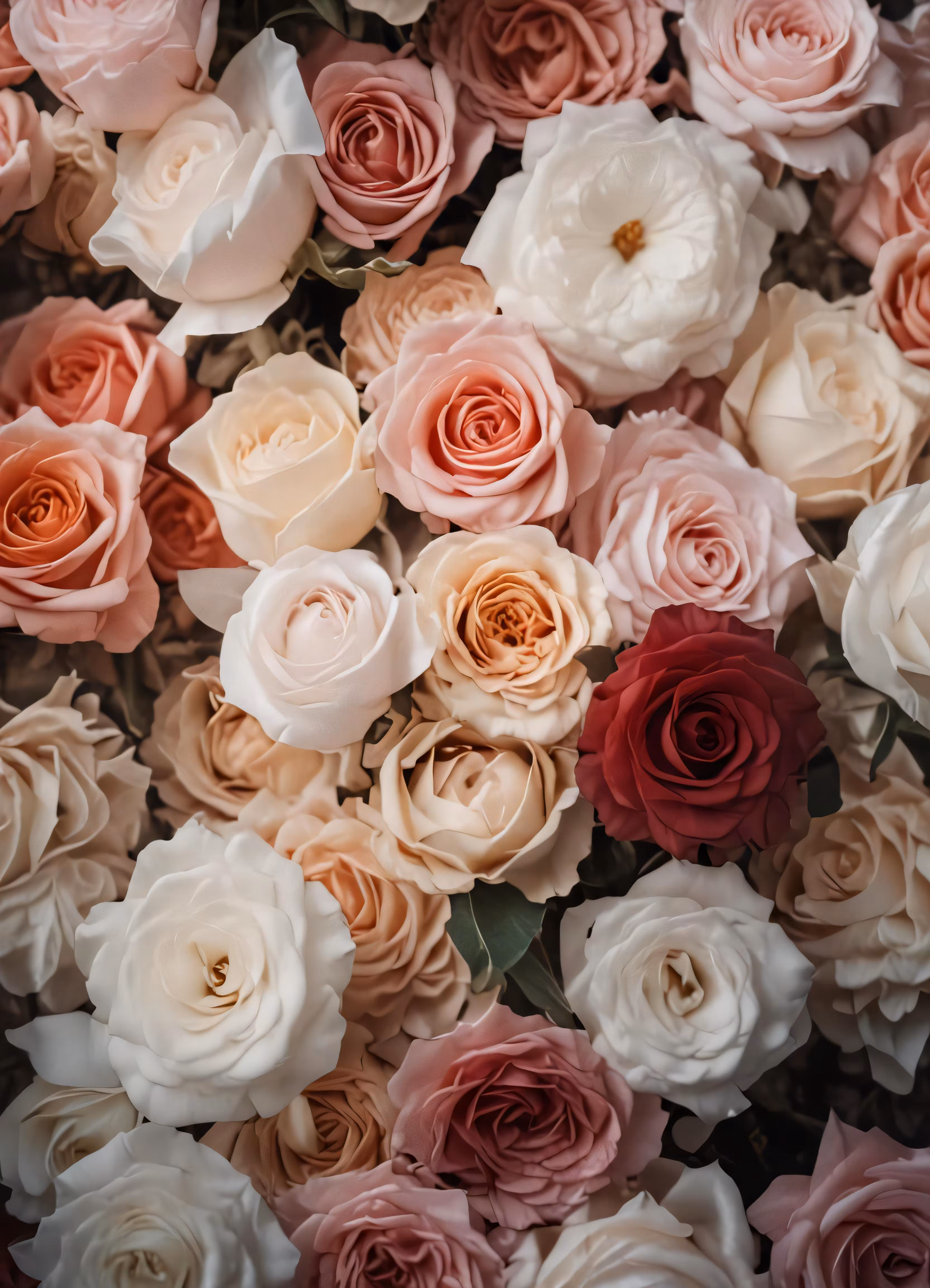 High resolution picture, free to use, multicolored flowers with multiple leaves spread together