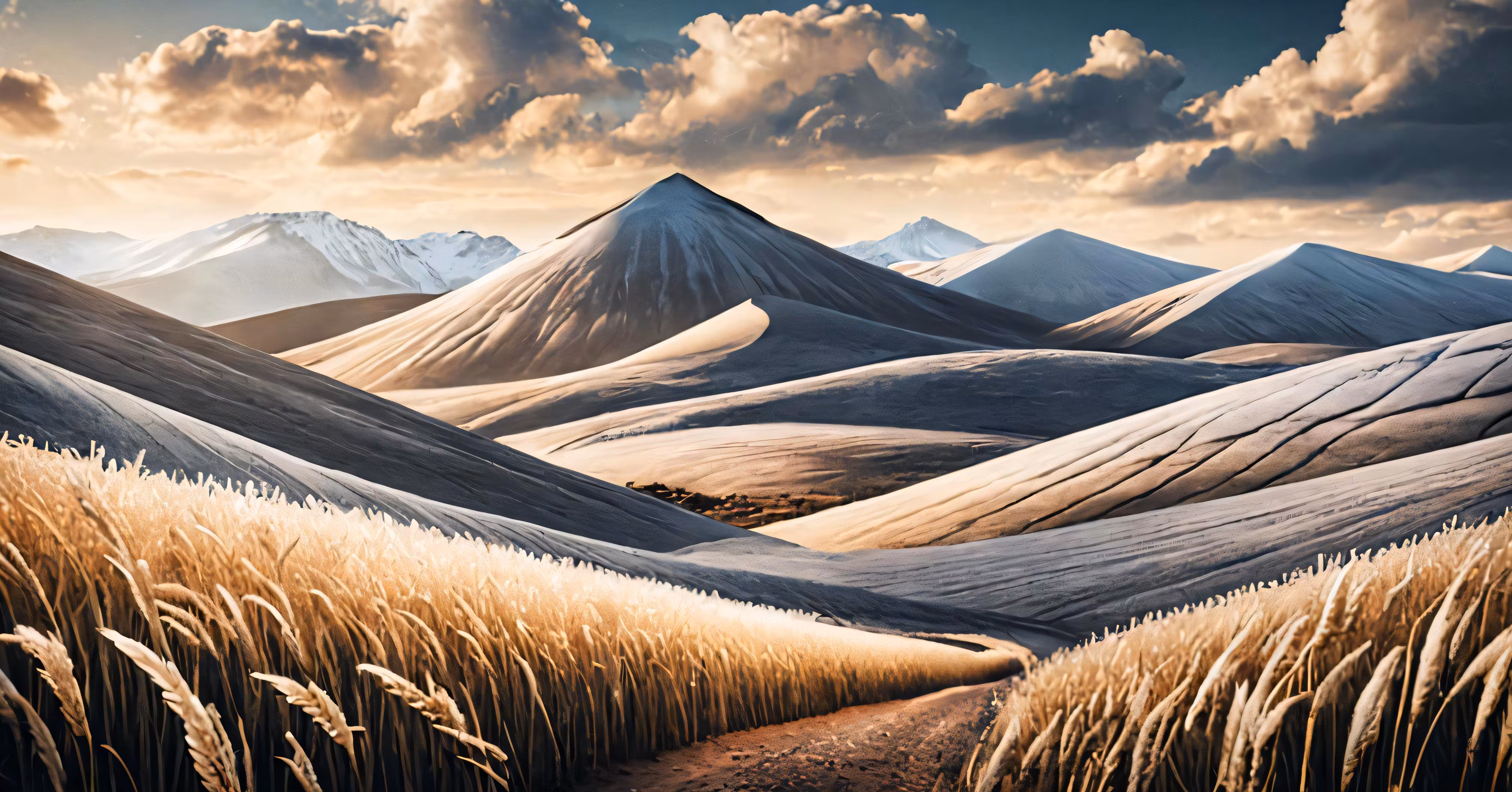 High resolution picture, free to use, painting depicting grassy and mountain range in daytime