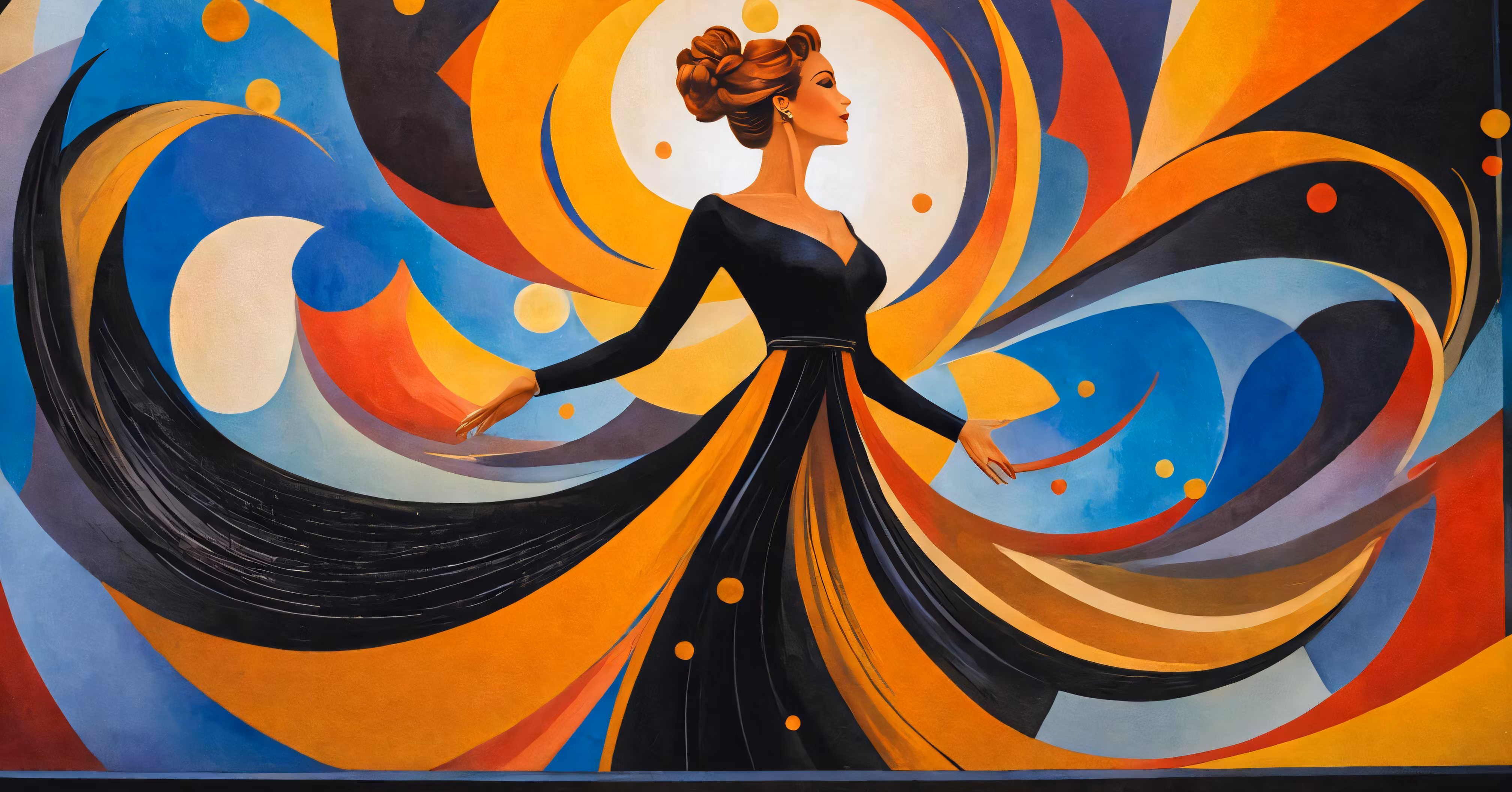 High resolution picture, free to use, painting on canvas of a woman in a long dress with flowing flowing patterns