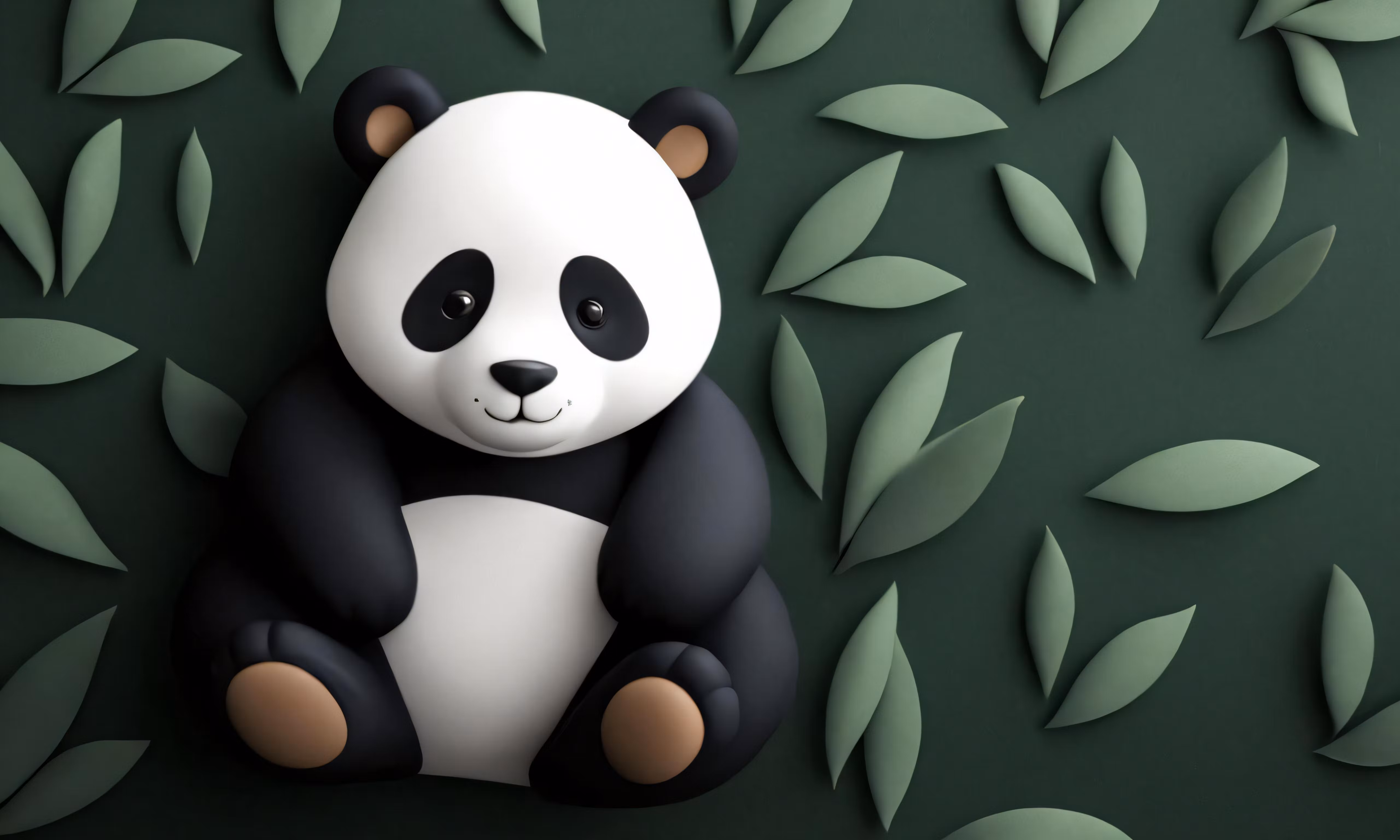 High resolution picture, free to use, panda sitting in front of some leaves with his paw on the ground