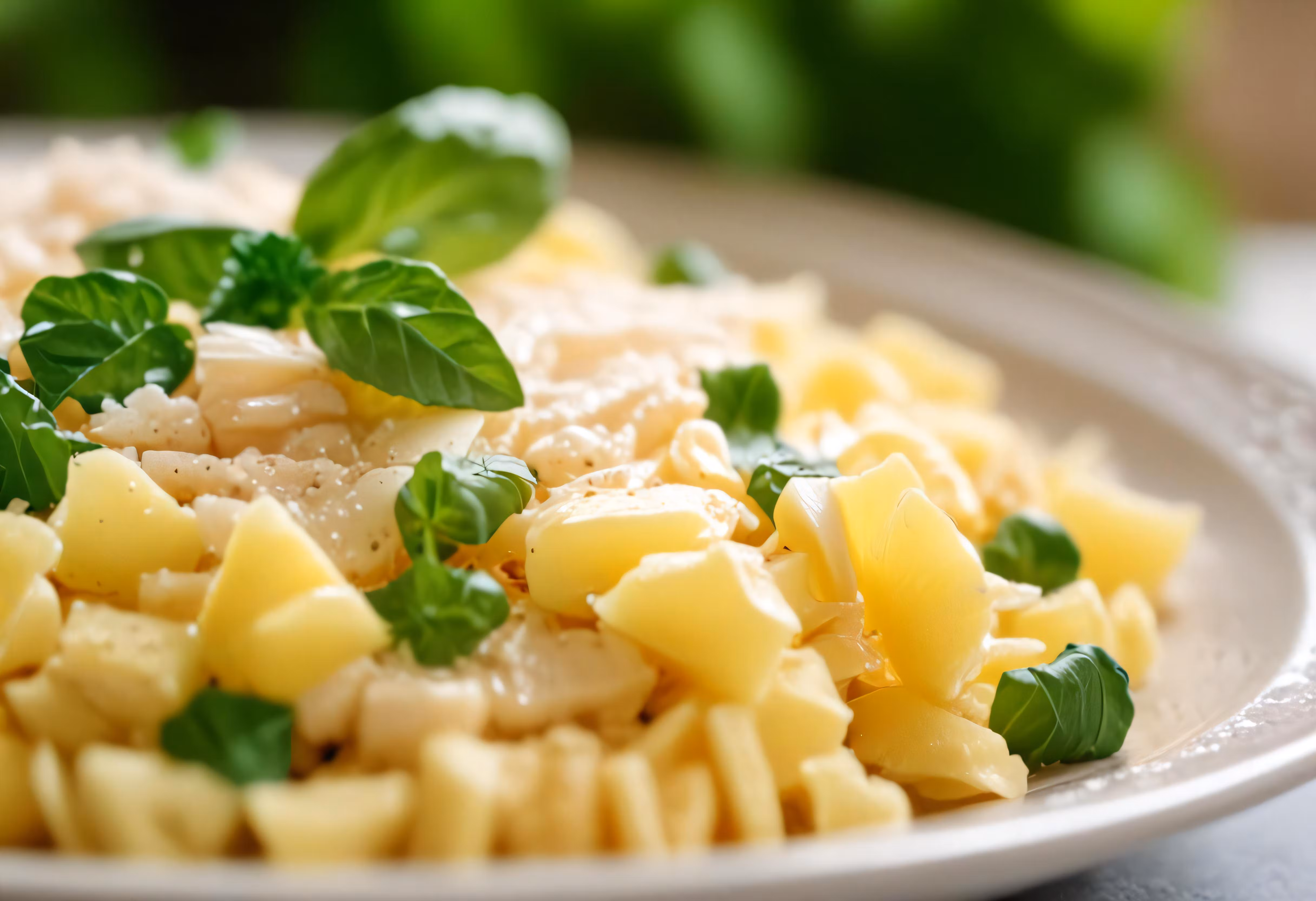 High resolution picture, free to use, pasta, bread, and water with basil on a plate