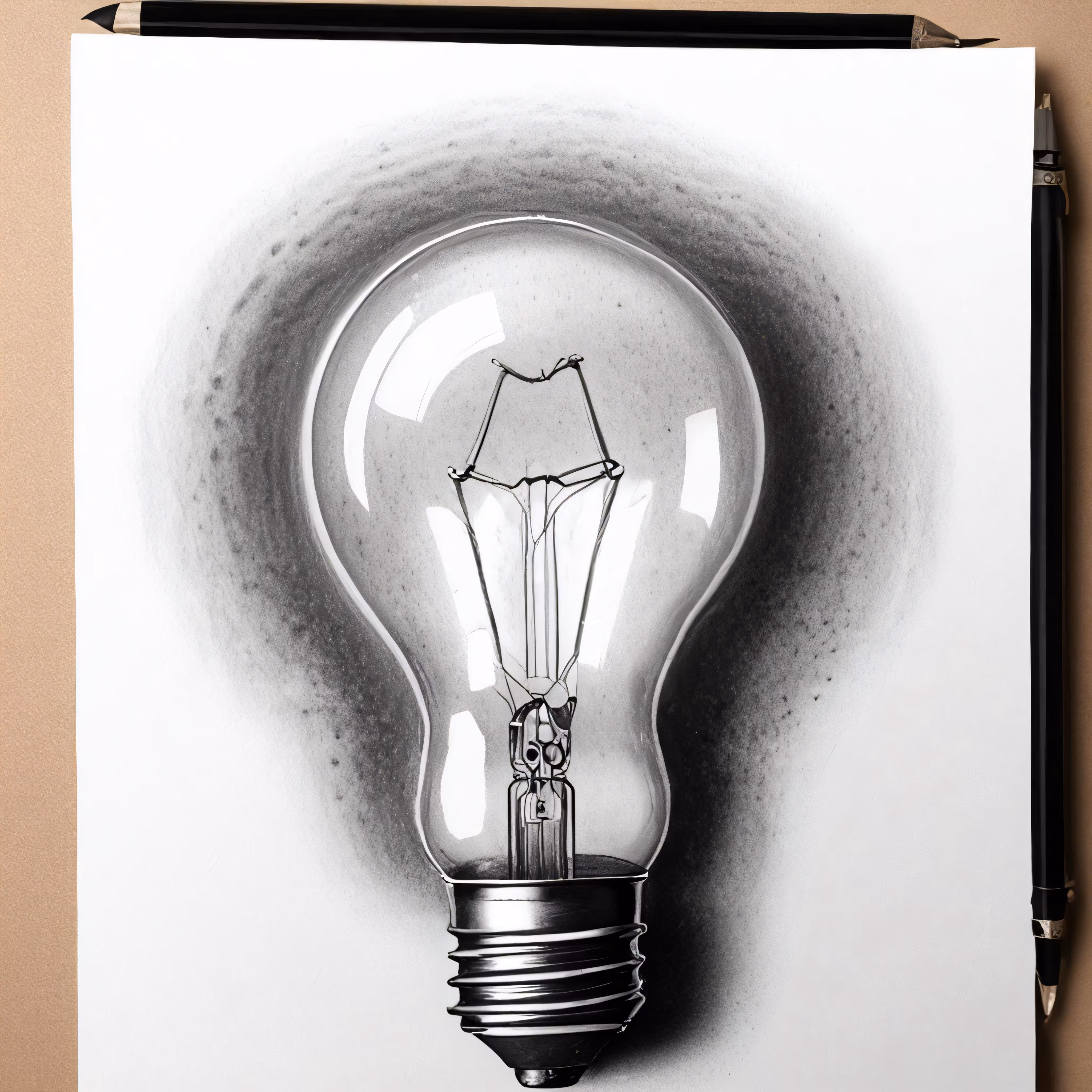 High resolution picture, free to use, pencil drawing of a light bulb displayed on paper