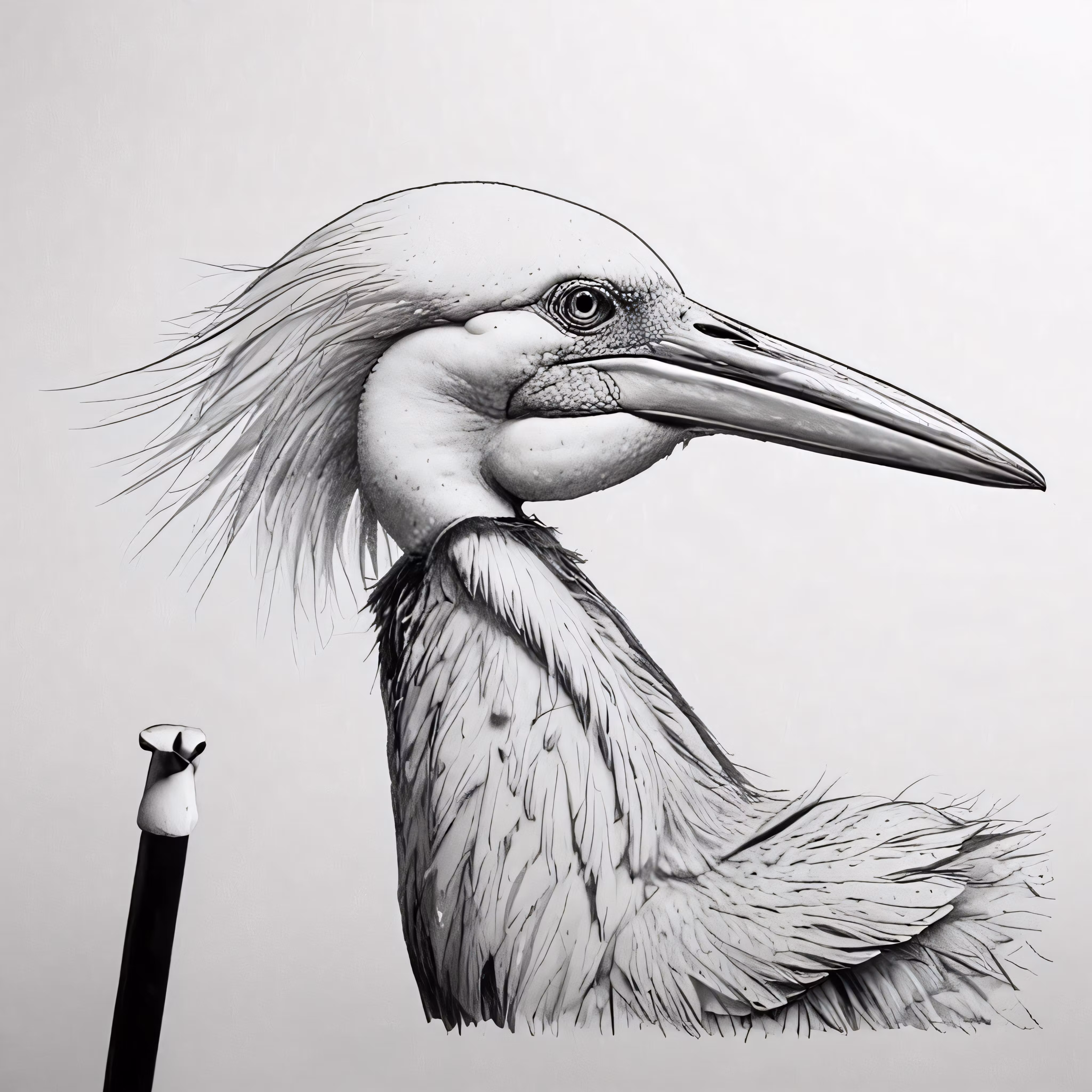 High resolution picture, free to use, pencil drawing of a stork, with its head slightly over the top