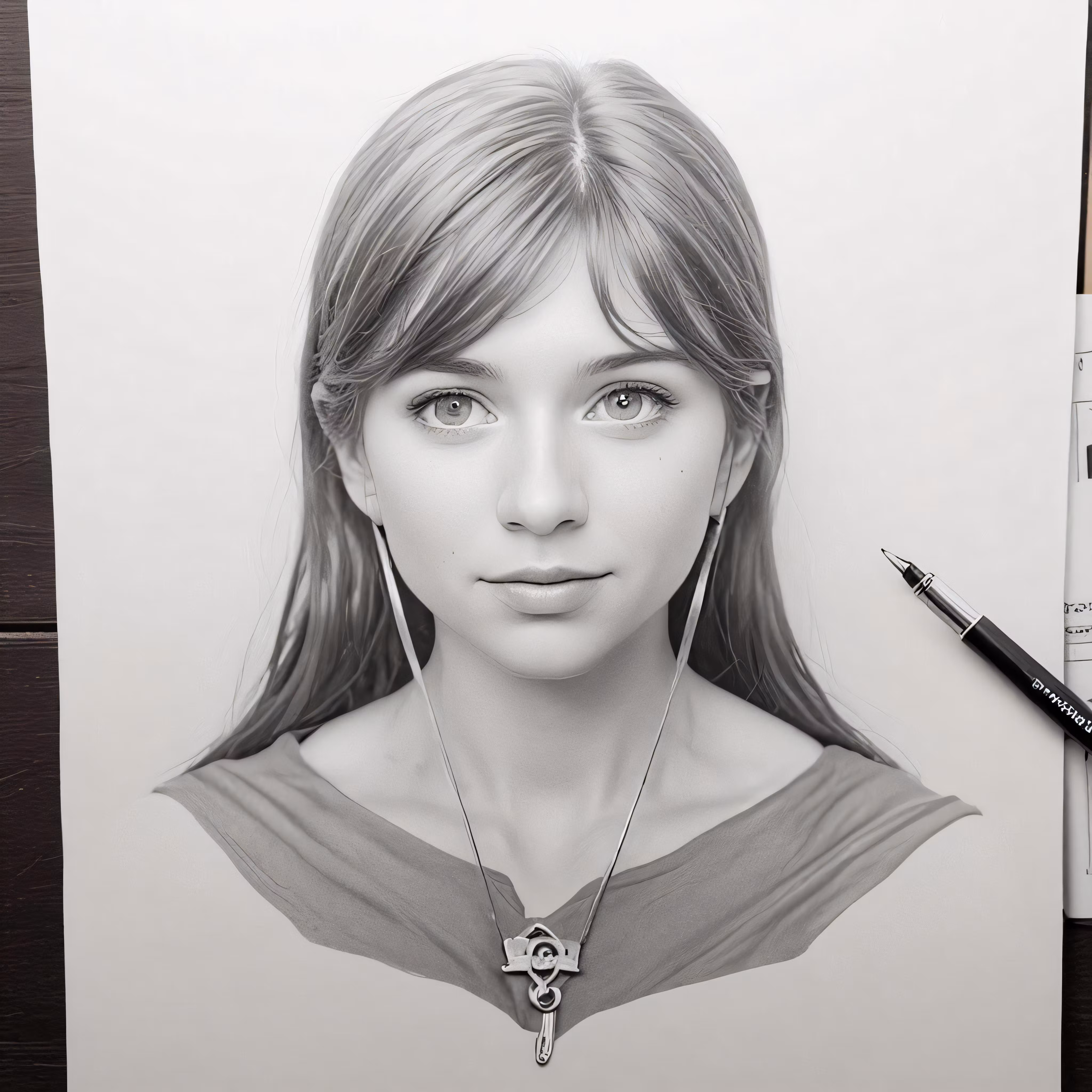 High resolution picture, free to use, pencil drawing of a young girl on paper