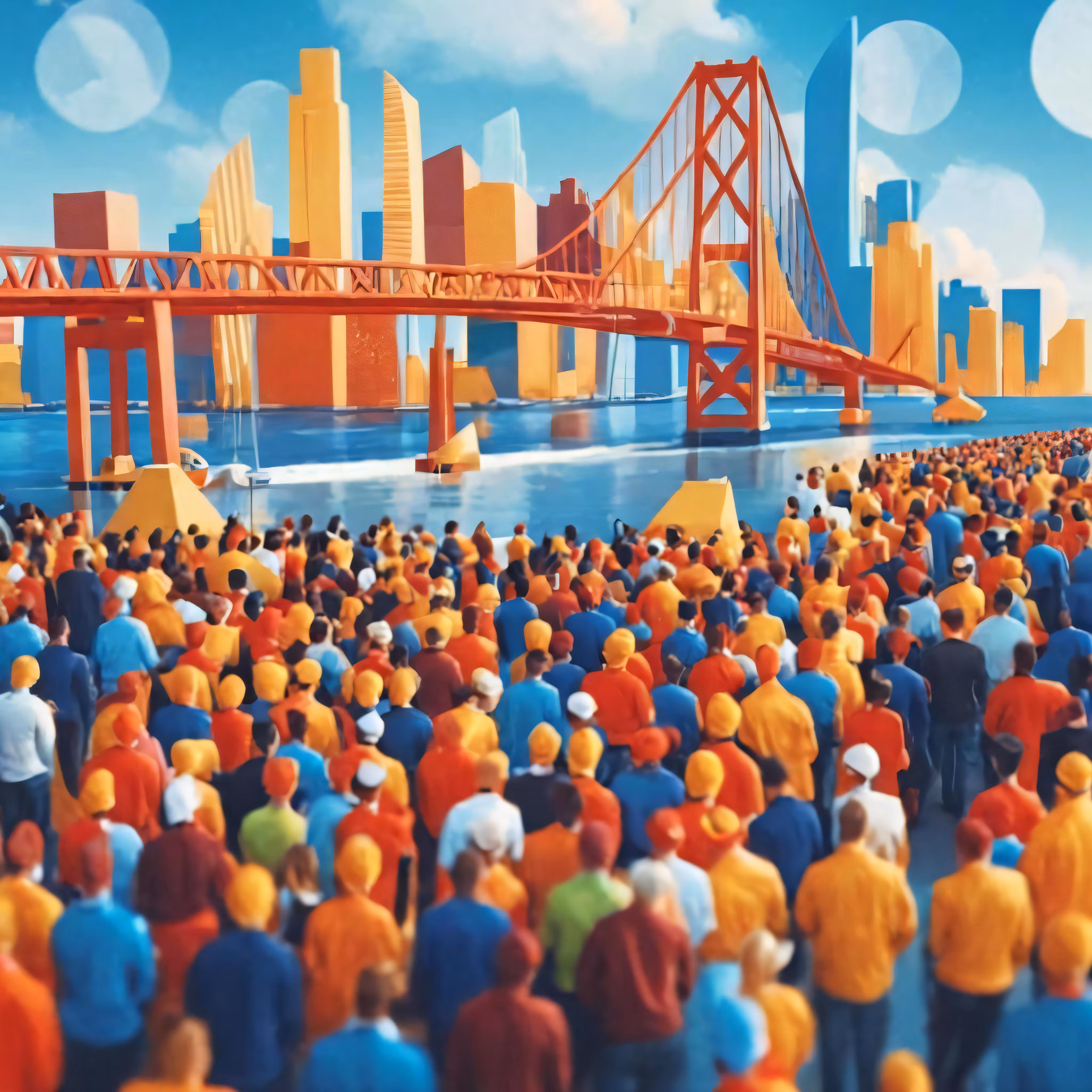 High resolution picture, free to use, people are standing by the water as the city is painted with orange and yellow
