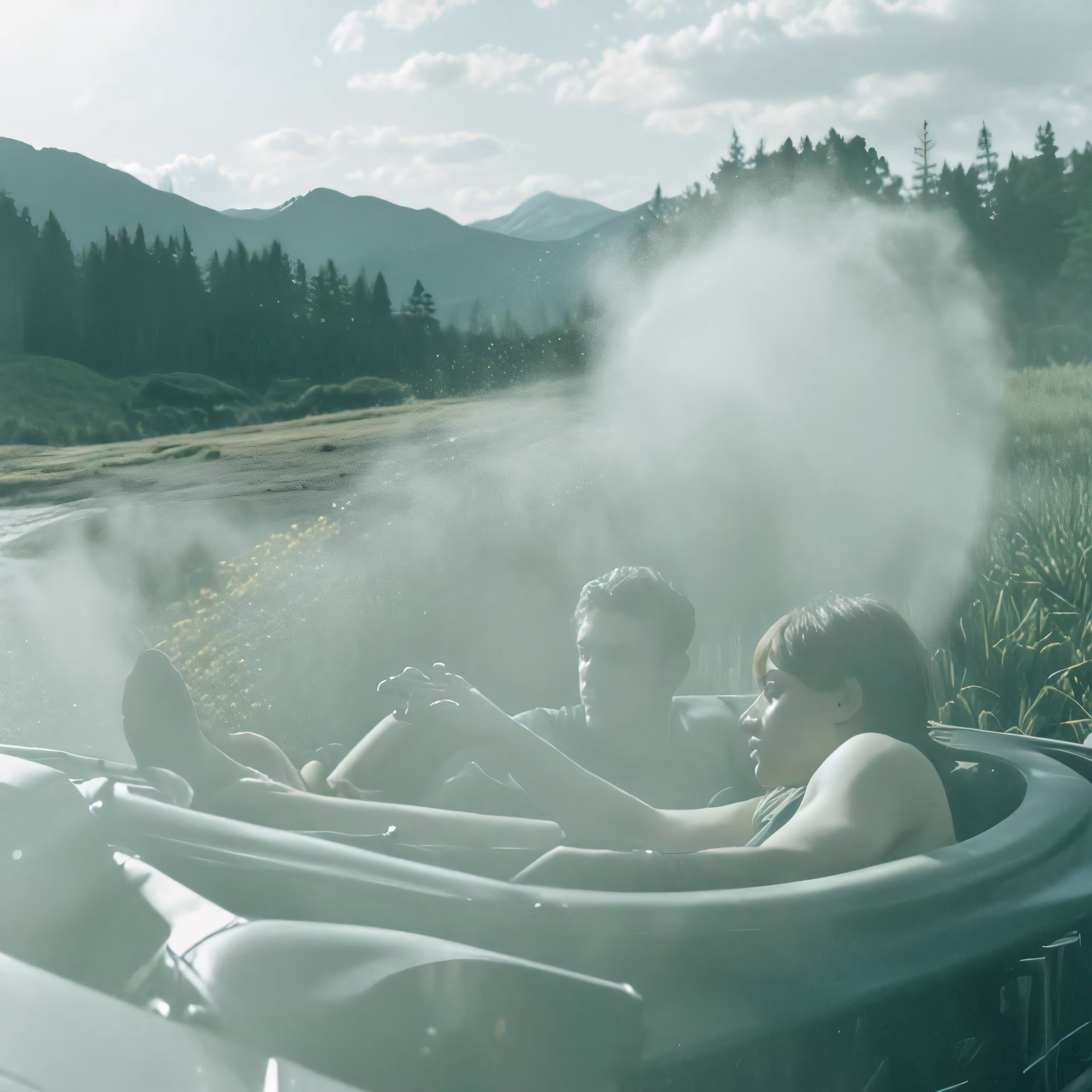 High resolution picture, free to use, people enjoying a spa day in a tub by the water