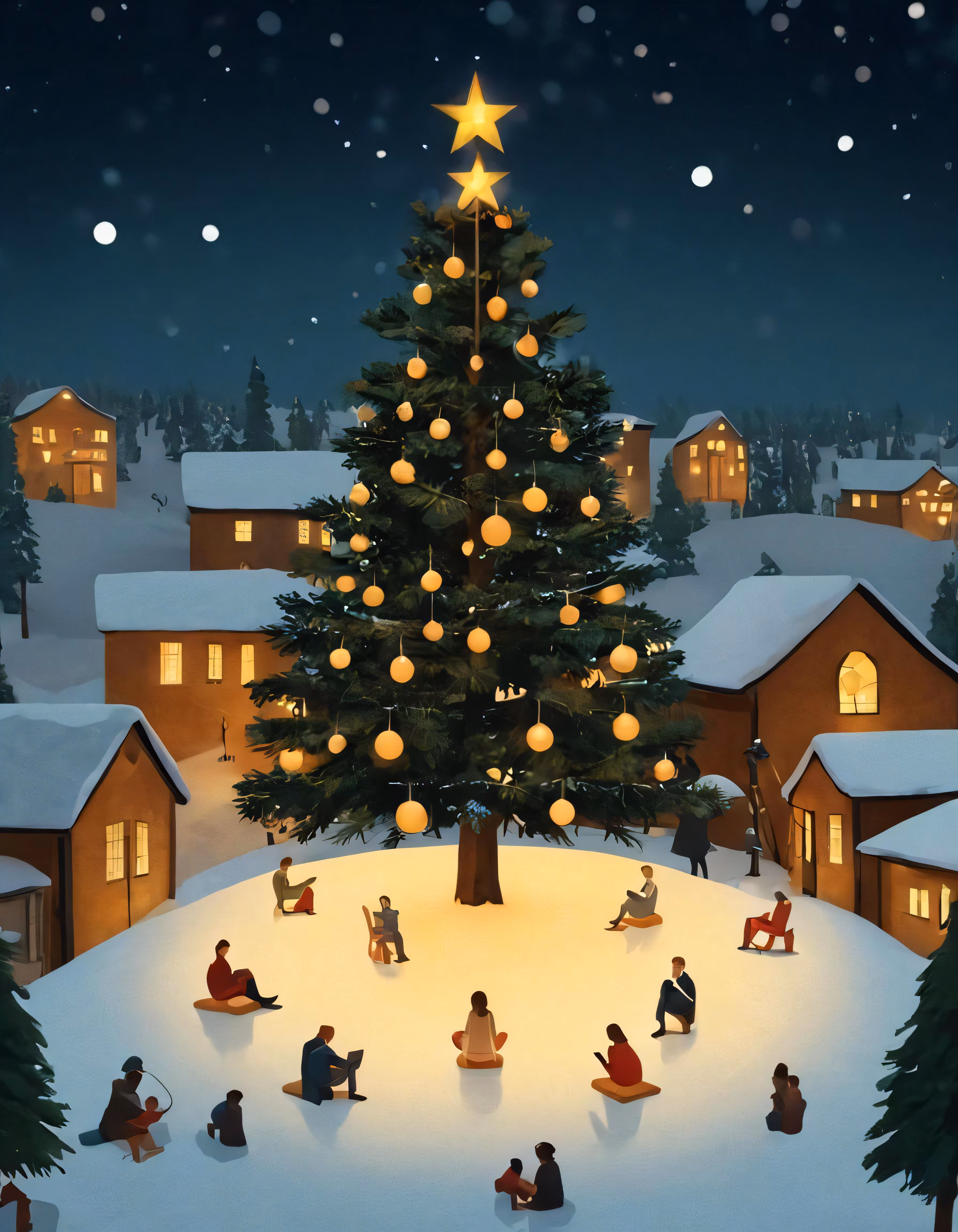 High resolution picture, free to use, people sitting around a lighted christmas tree