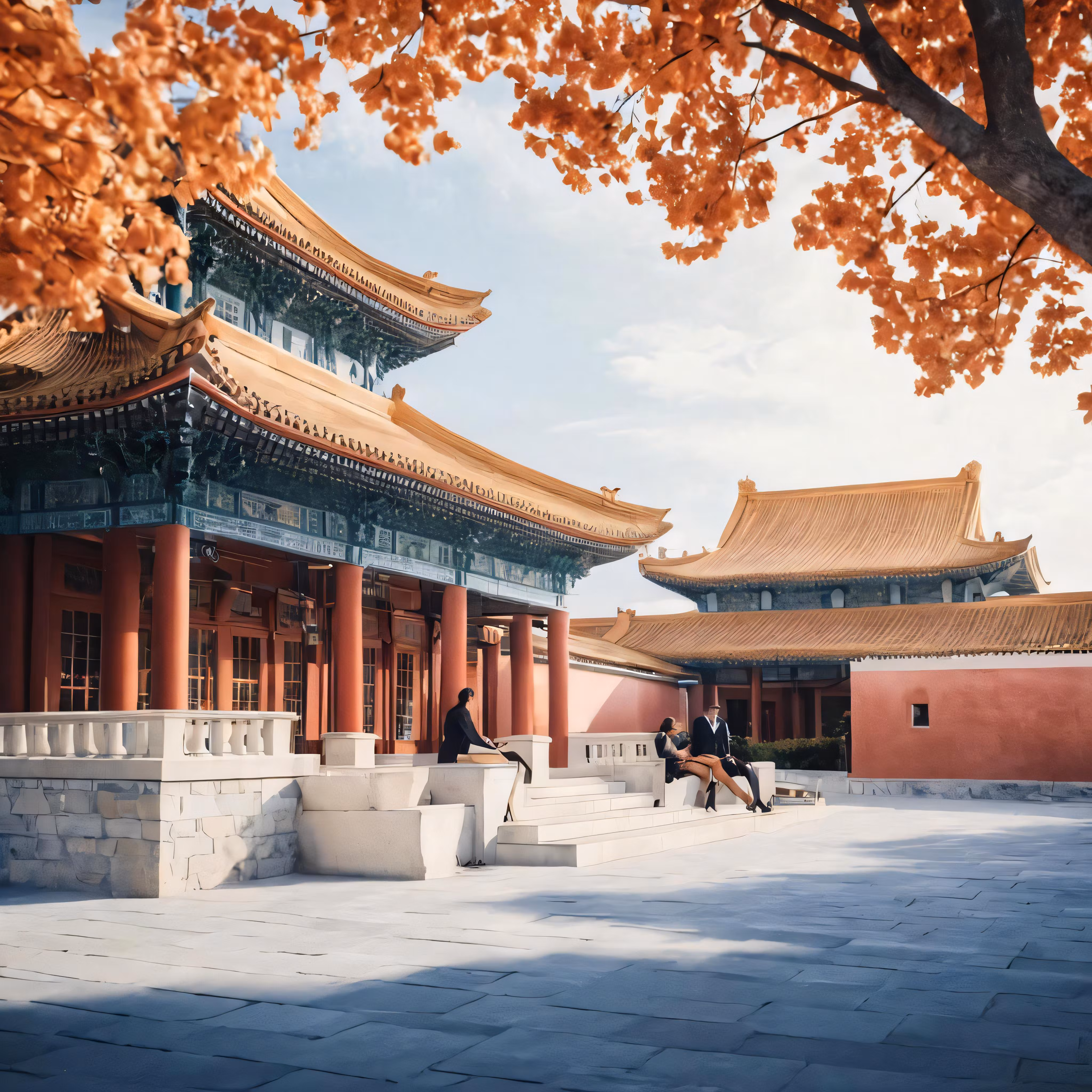 High resolution picture, free to use, people sitting on the steps in front of a building