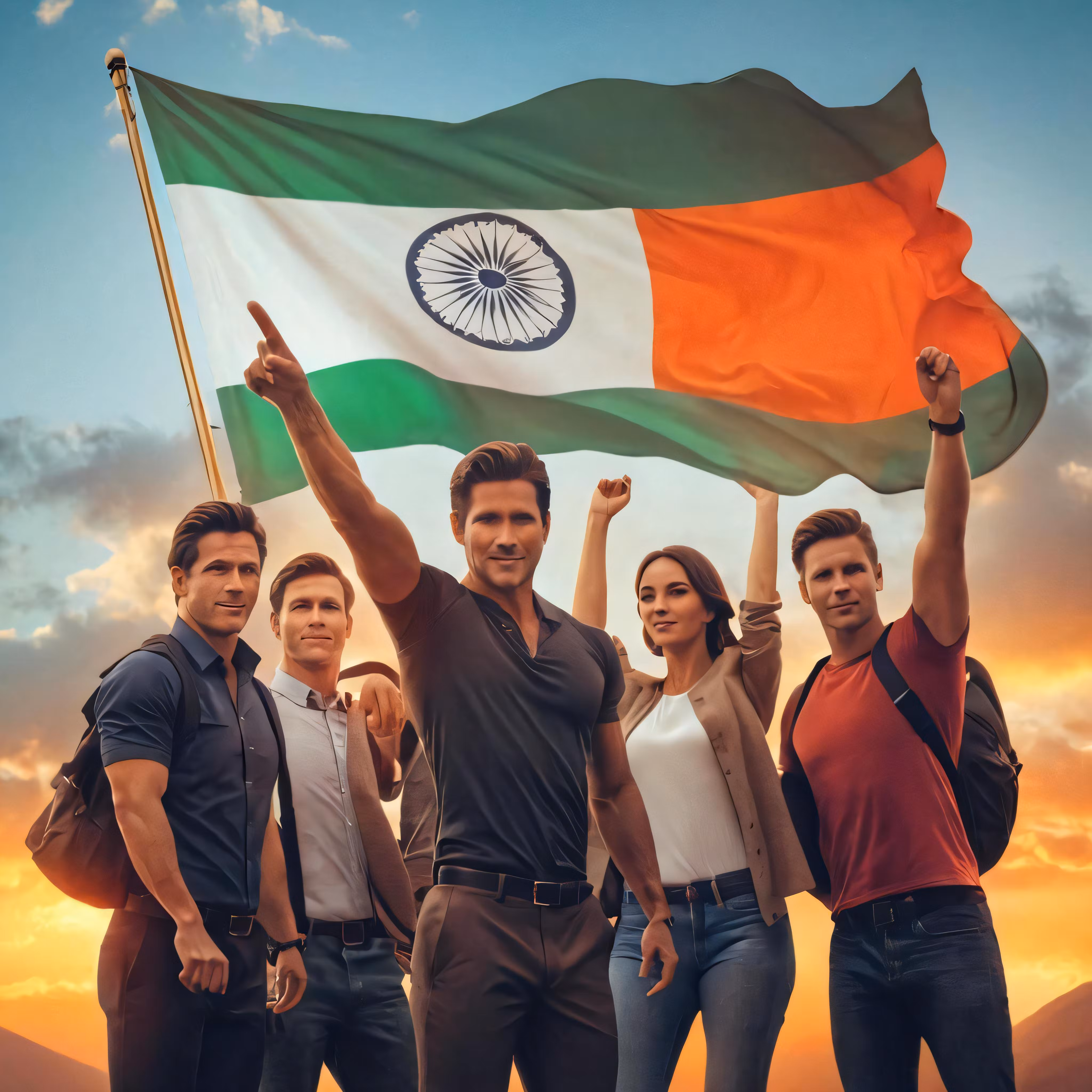 High resolution picture, free to use, people with a flag and a man standing next to them