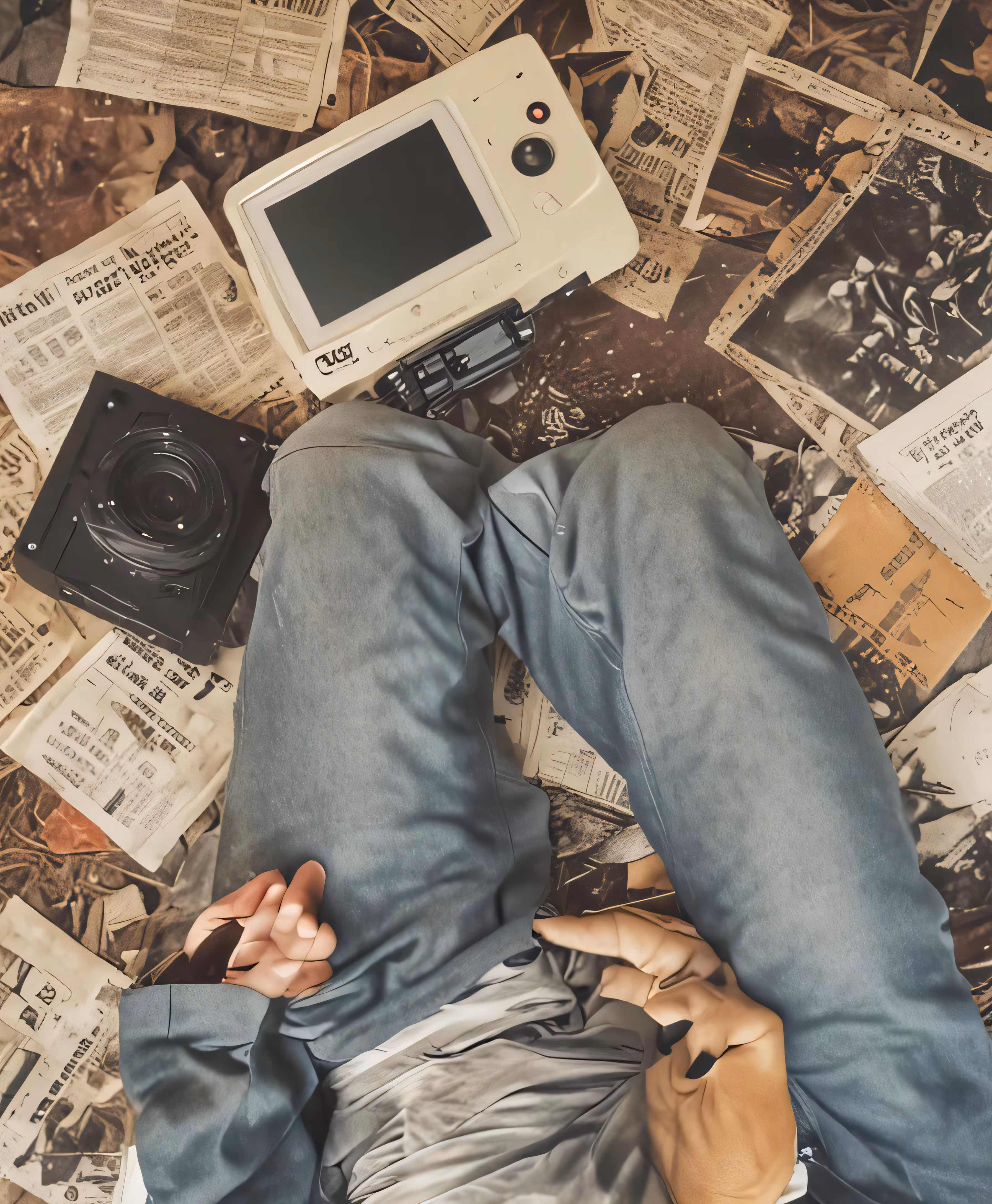 High resolution picture, free to use, person laying on top of newspaper on floor