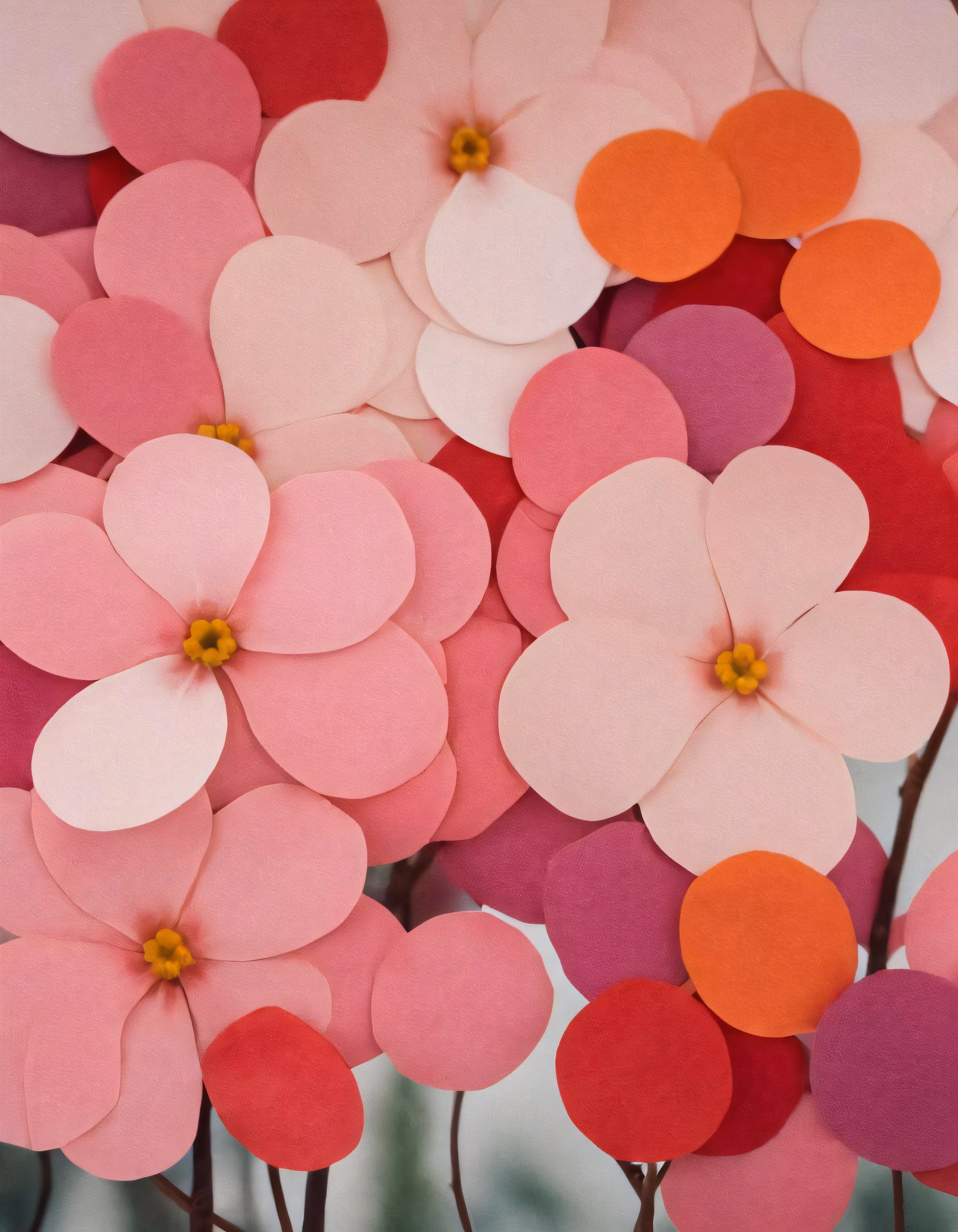High resolution picture, free to use, pink, orange and pink paper flowers arranged on sticks