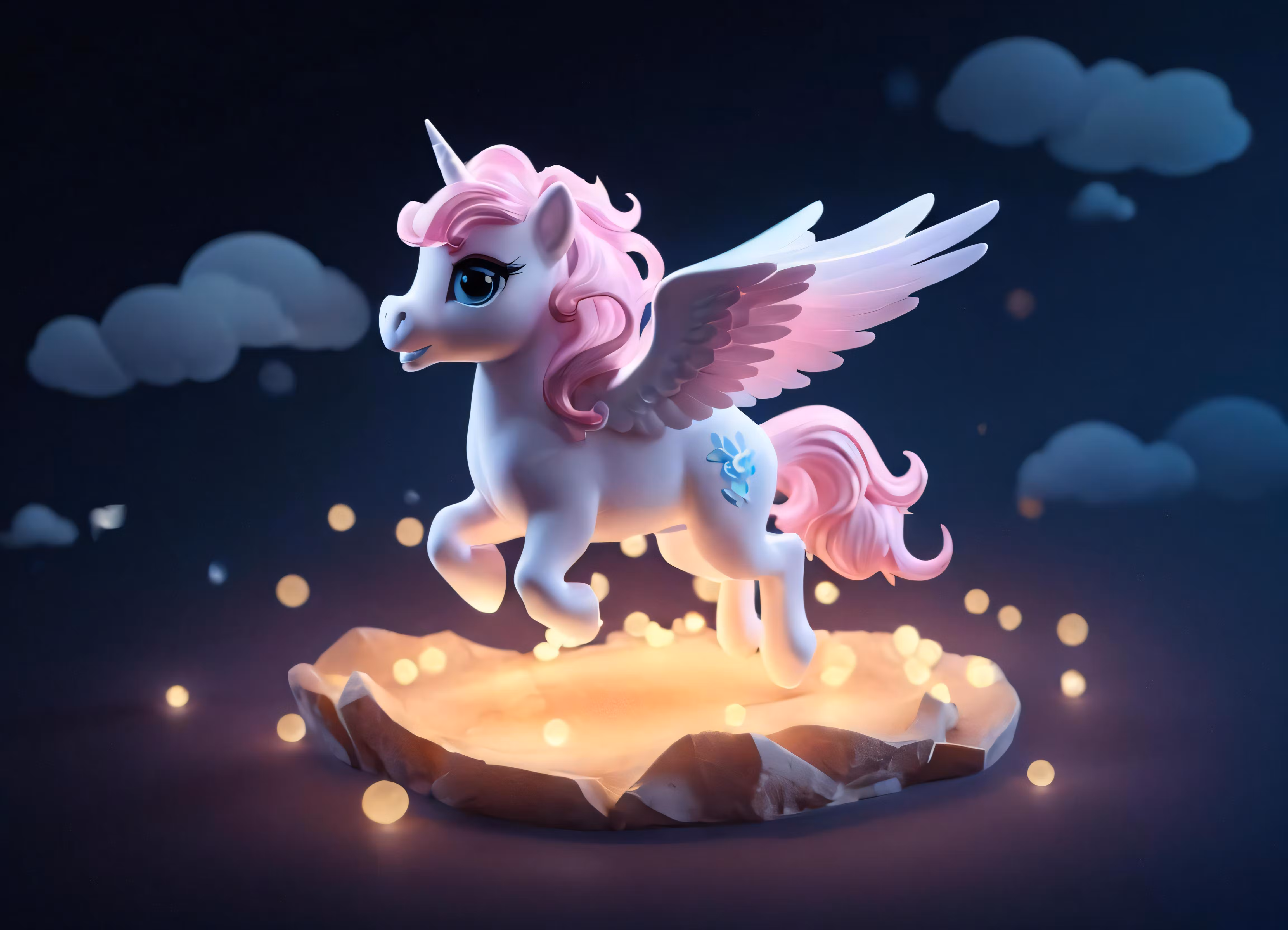 High resolution picture, free to use, pink fairy horse statue with white feathers and pink mane