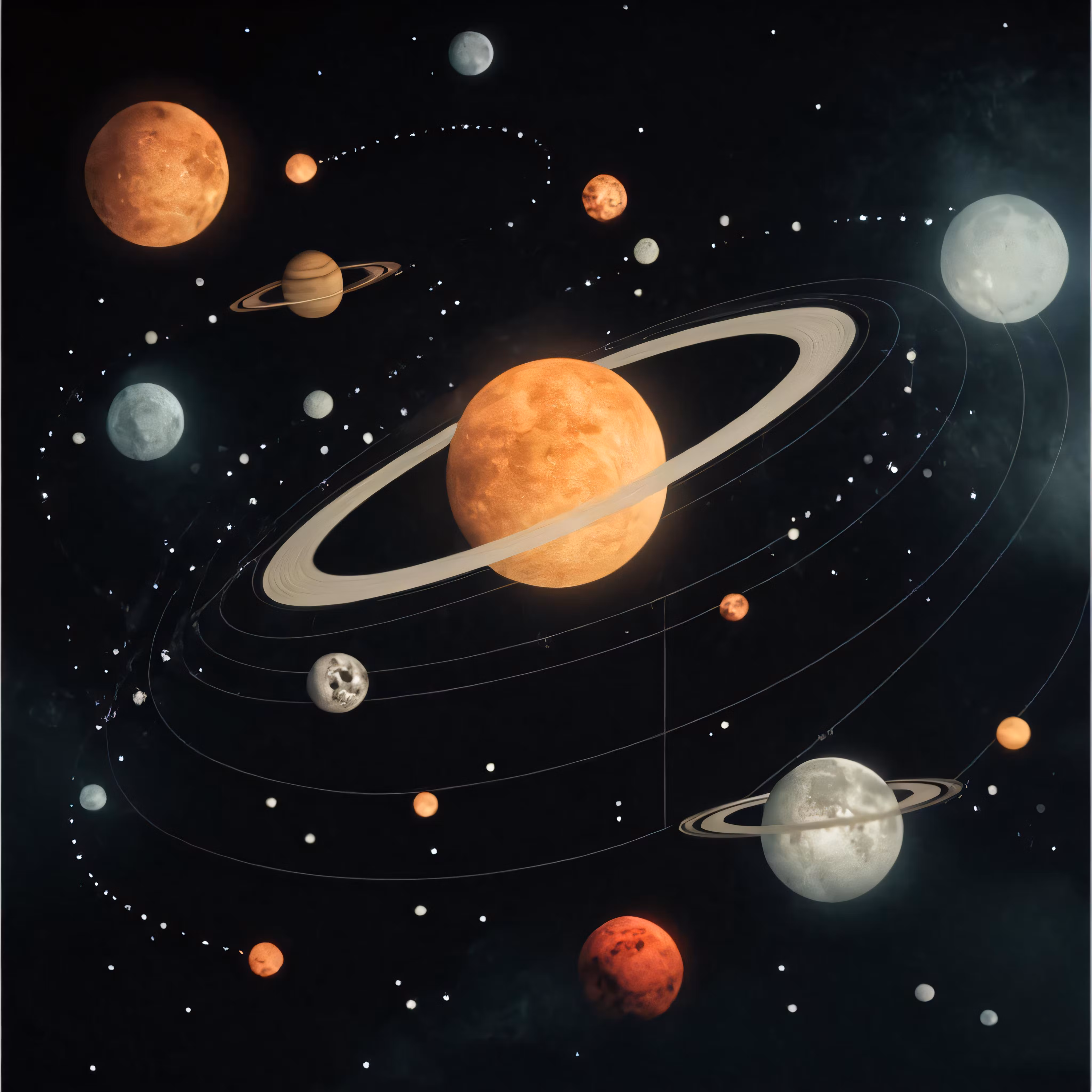 High resolution picture, free to use, planets and rings in the sky surrounded by stars