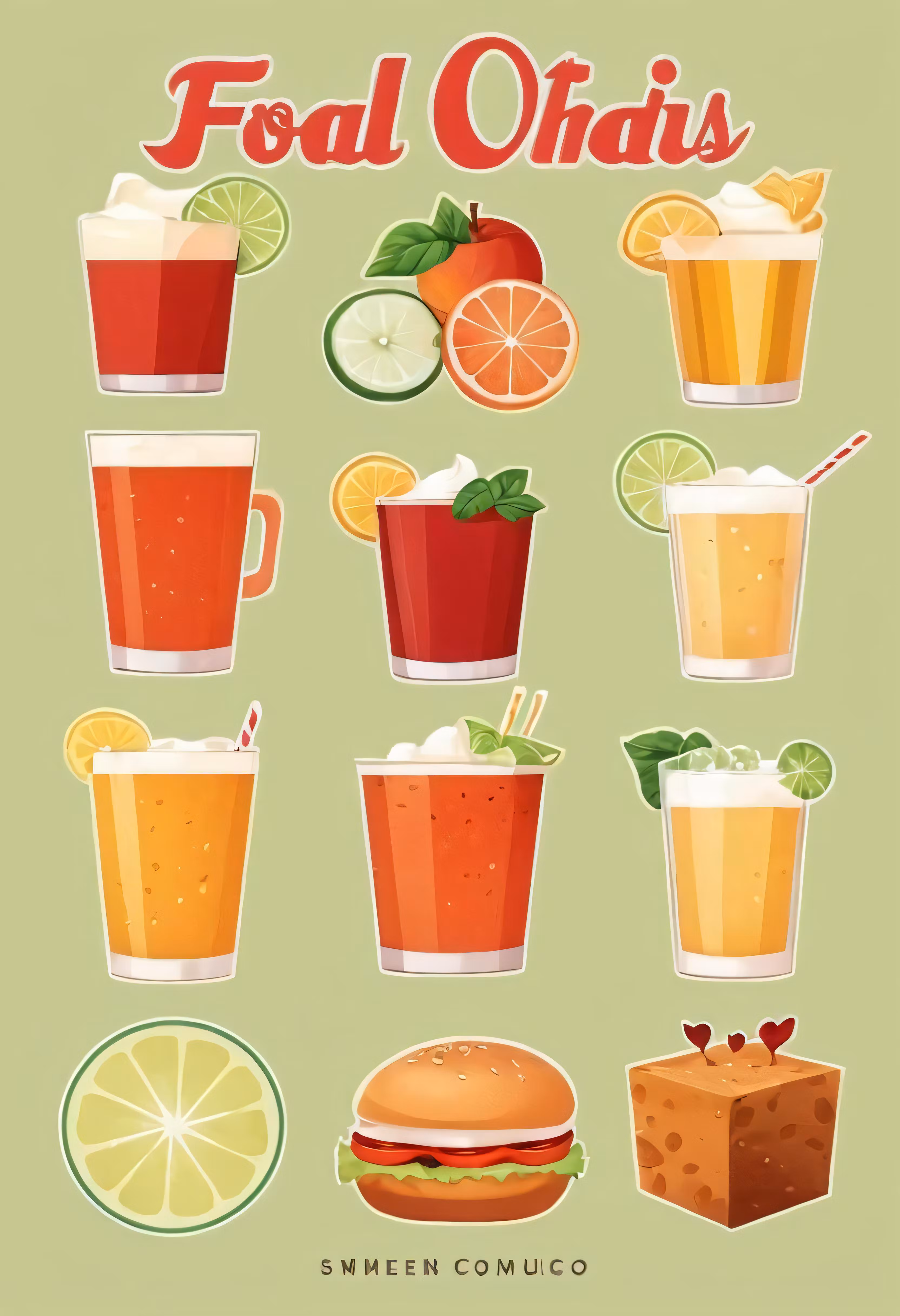 High resolution picture, free to use, poster of different drinks and drink names