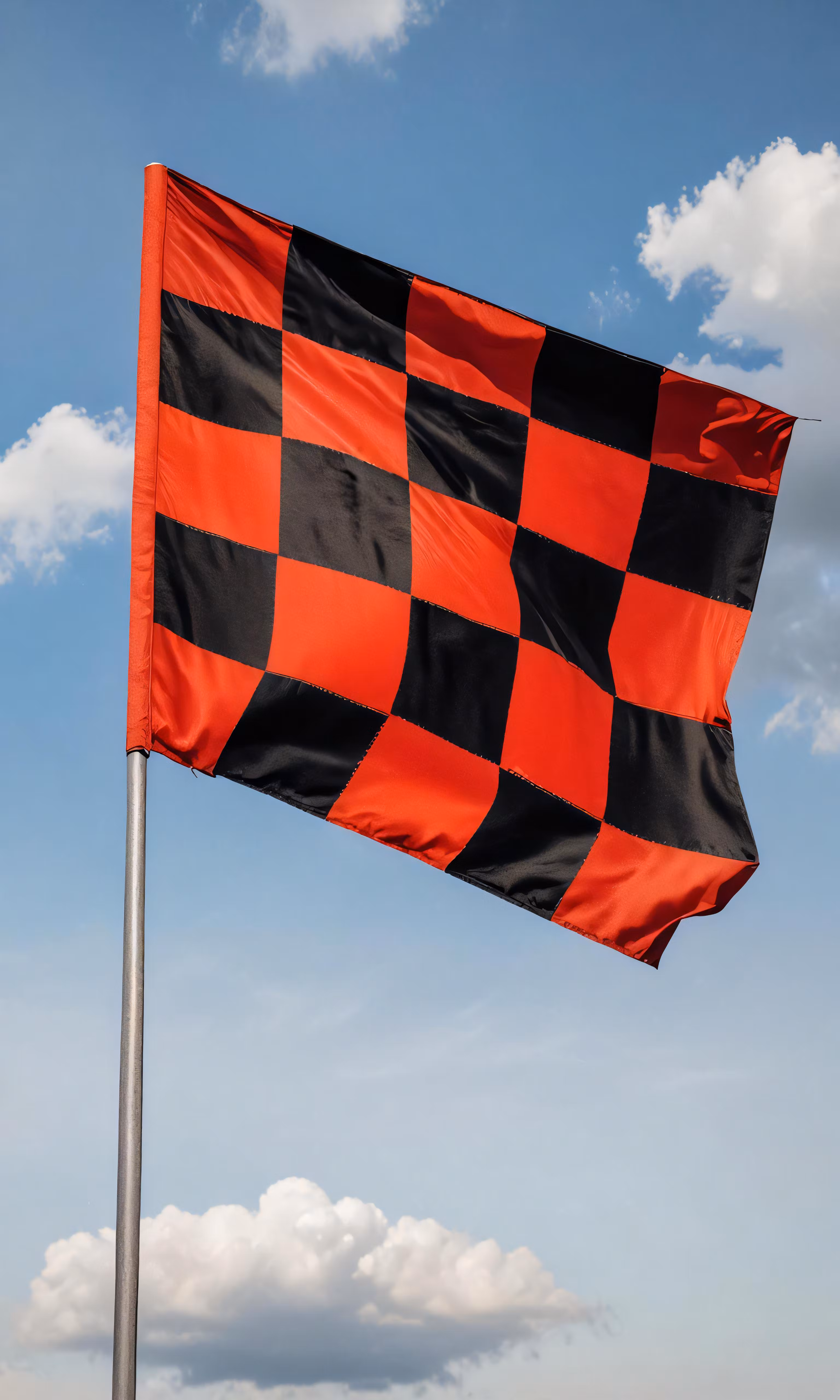 High resolution picture, free to use, red and black checkedered flag flying on a pole