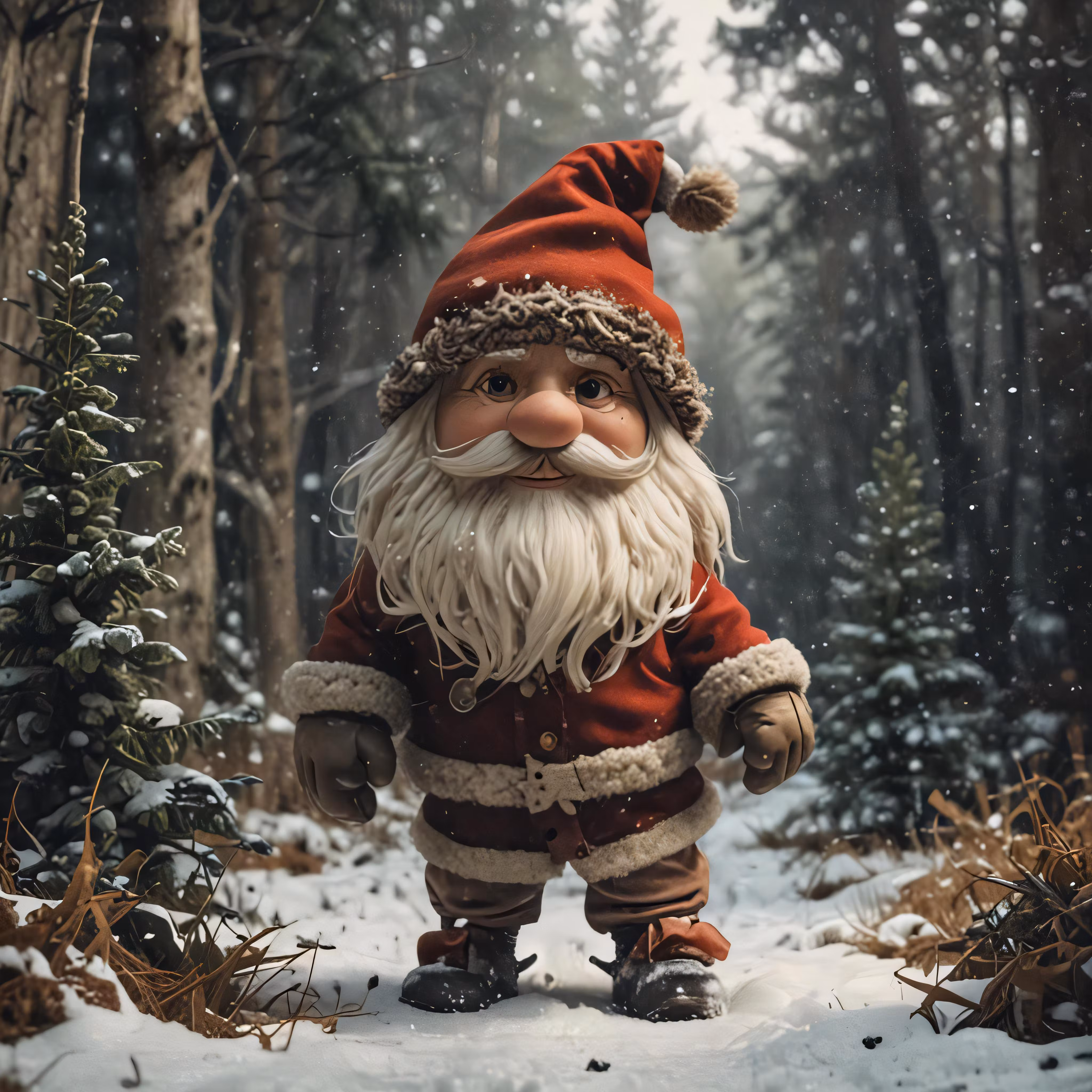 High resolution picture, free to use, santa claus standing in a forest for holiday greetings