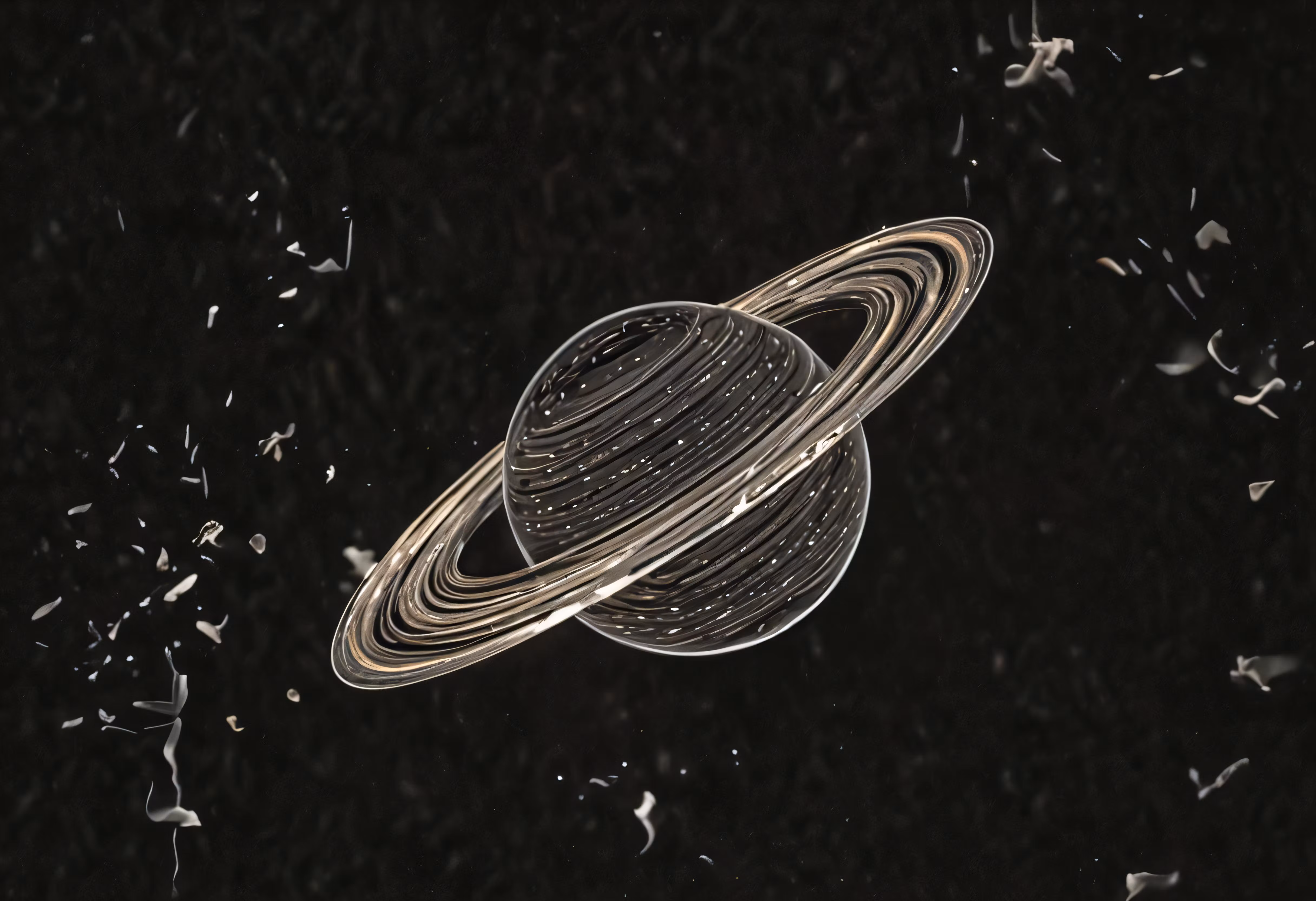 High resolution picture, free to use, saturn surrounded by space debris in the air