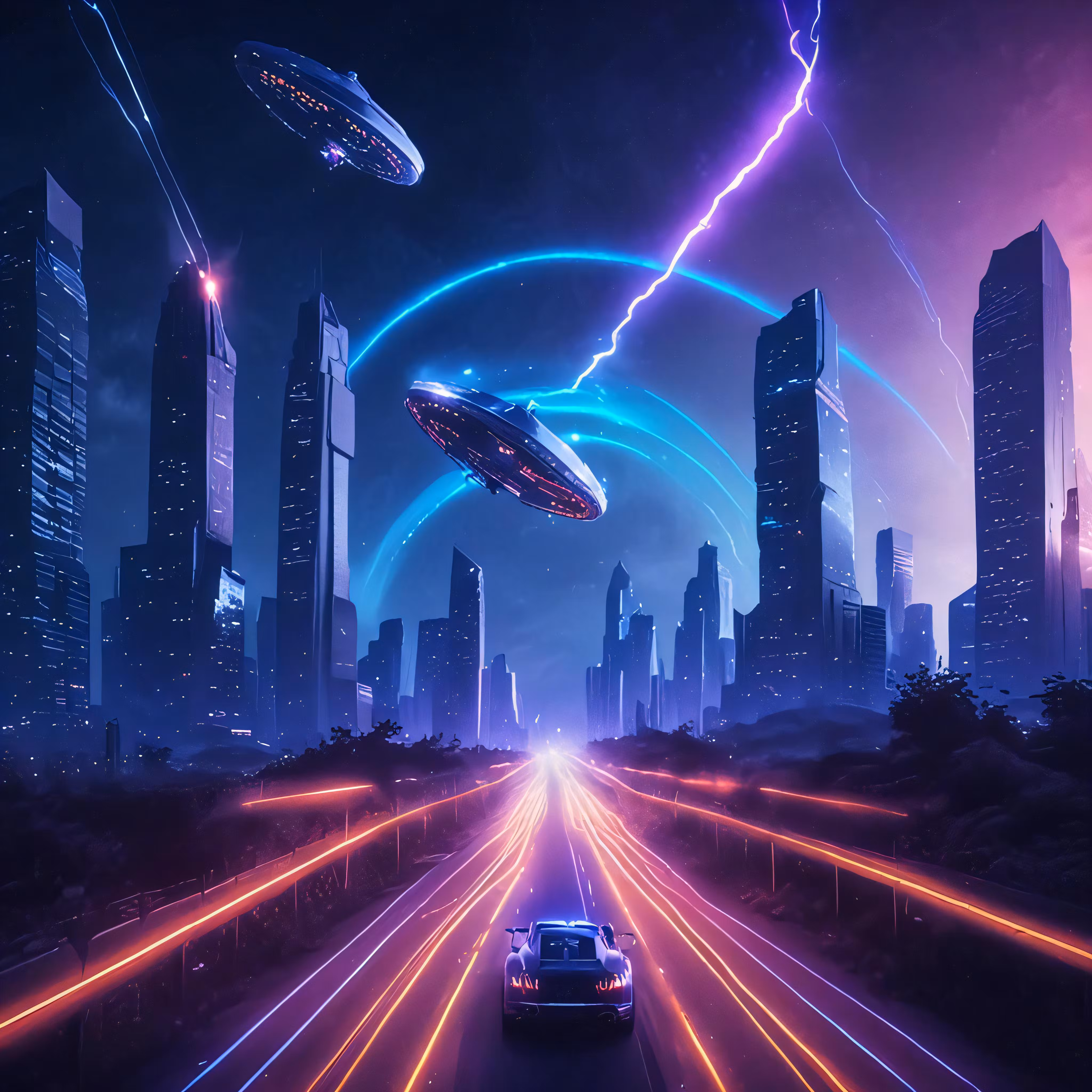 High resolution picture, free to use, sci   fi futuristic city with cars and flying objects