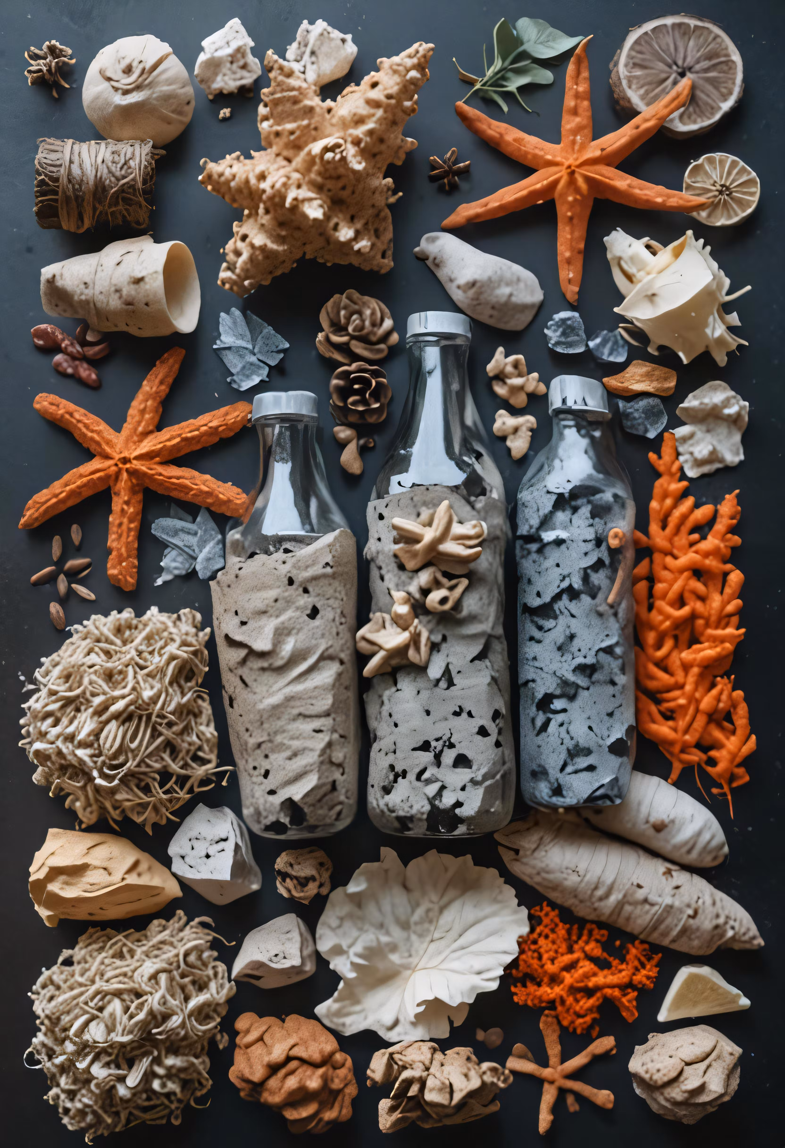 High resolution picture, free to use, several ceramic items of different shapes and sizes are arranged on black surface
