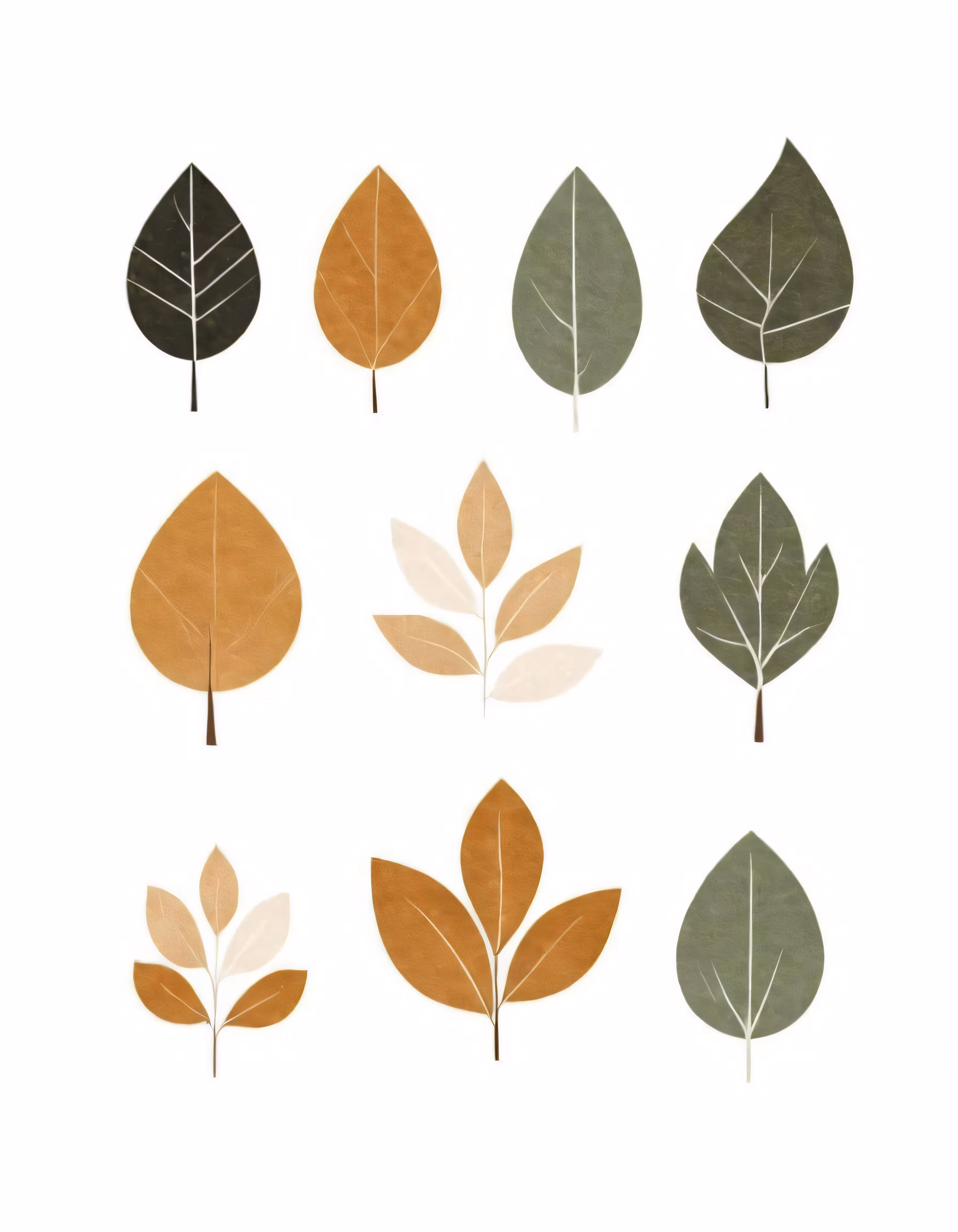 High resolution picture, free to use, several colored leaves on white paper