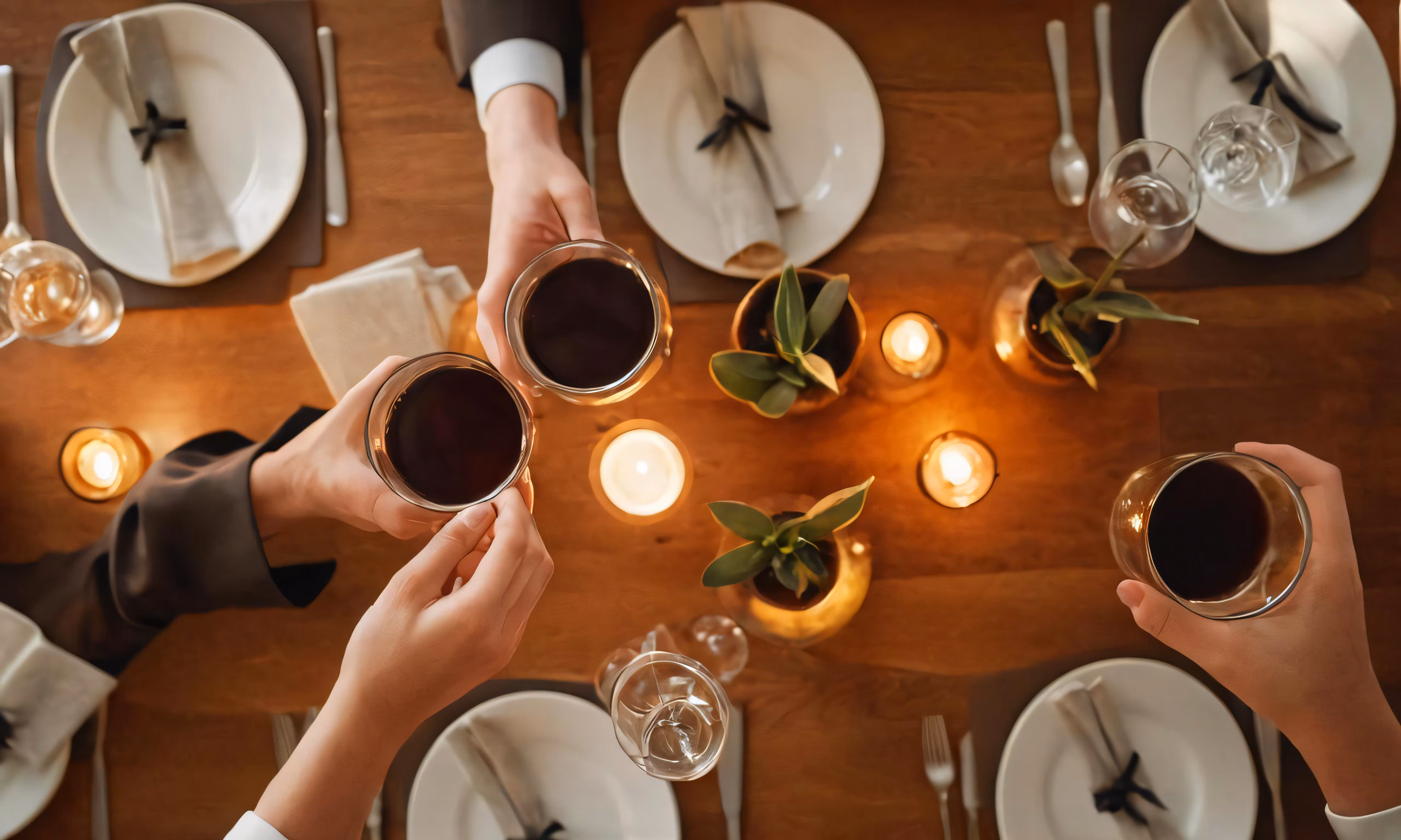 High resolution picture, free to use, several people are raising their glasses to toast at the table