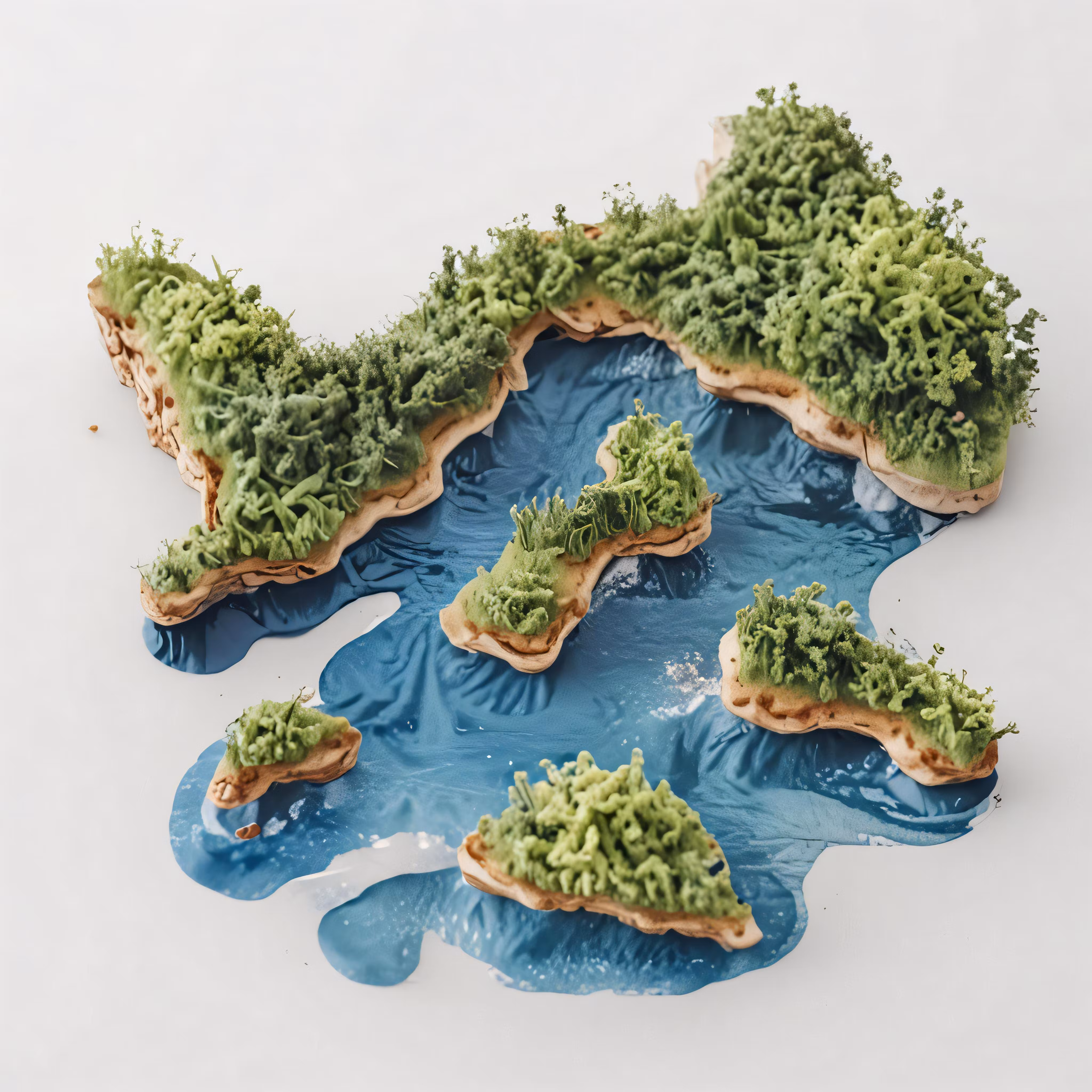 High resolution picture, free to use, several shaped plants sitting on top of a blue piece of bread