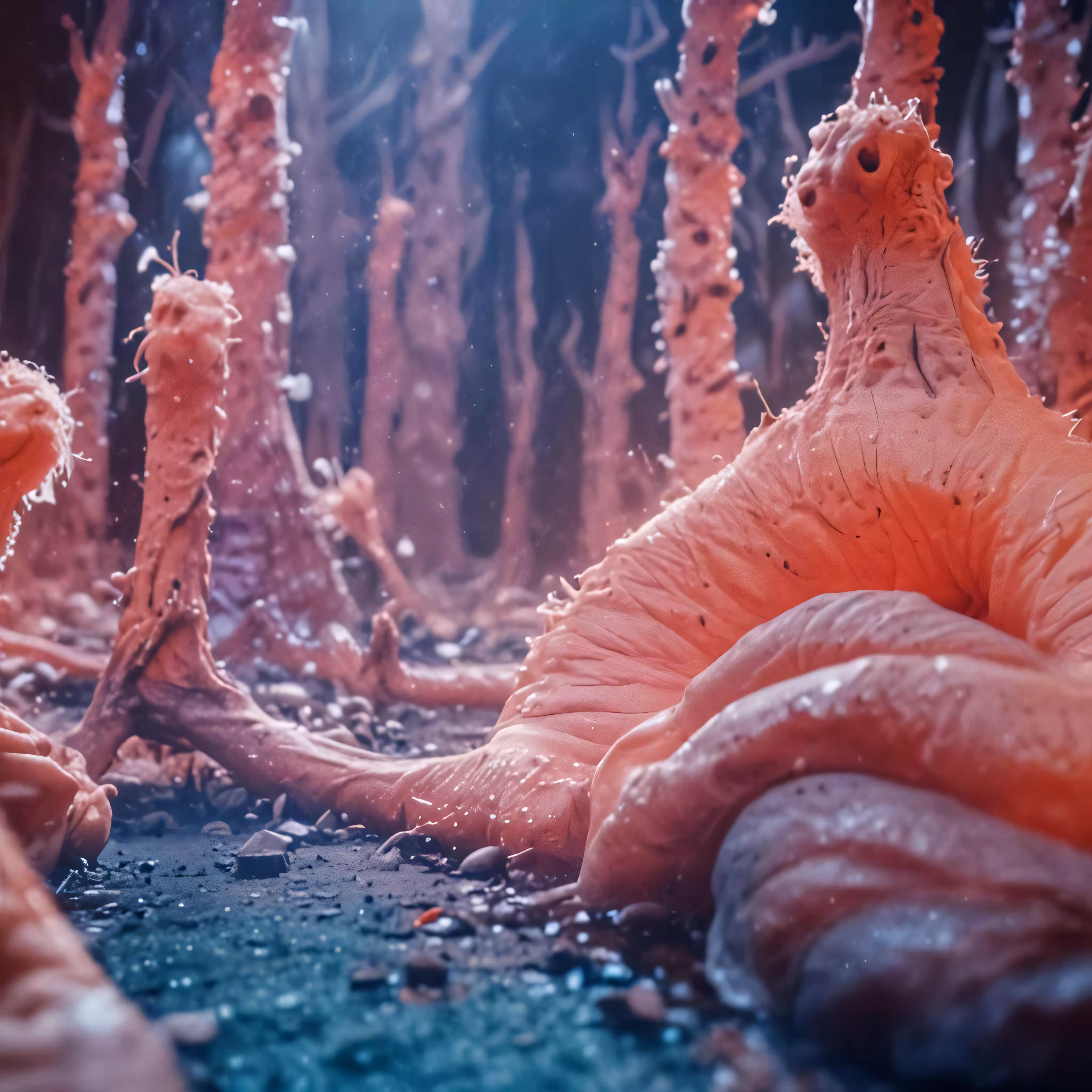 High resolution picture, free to use, several strange creatures inside a very tall tree
