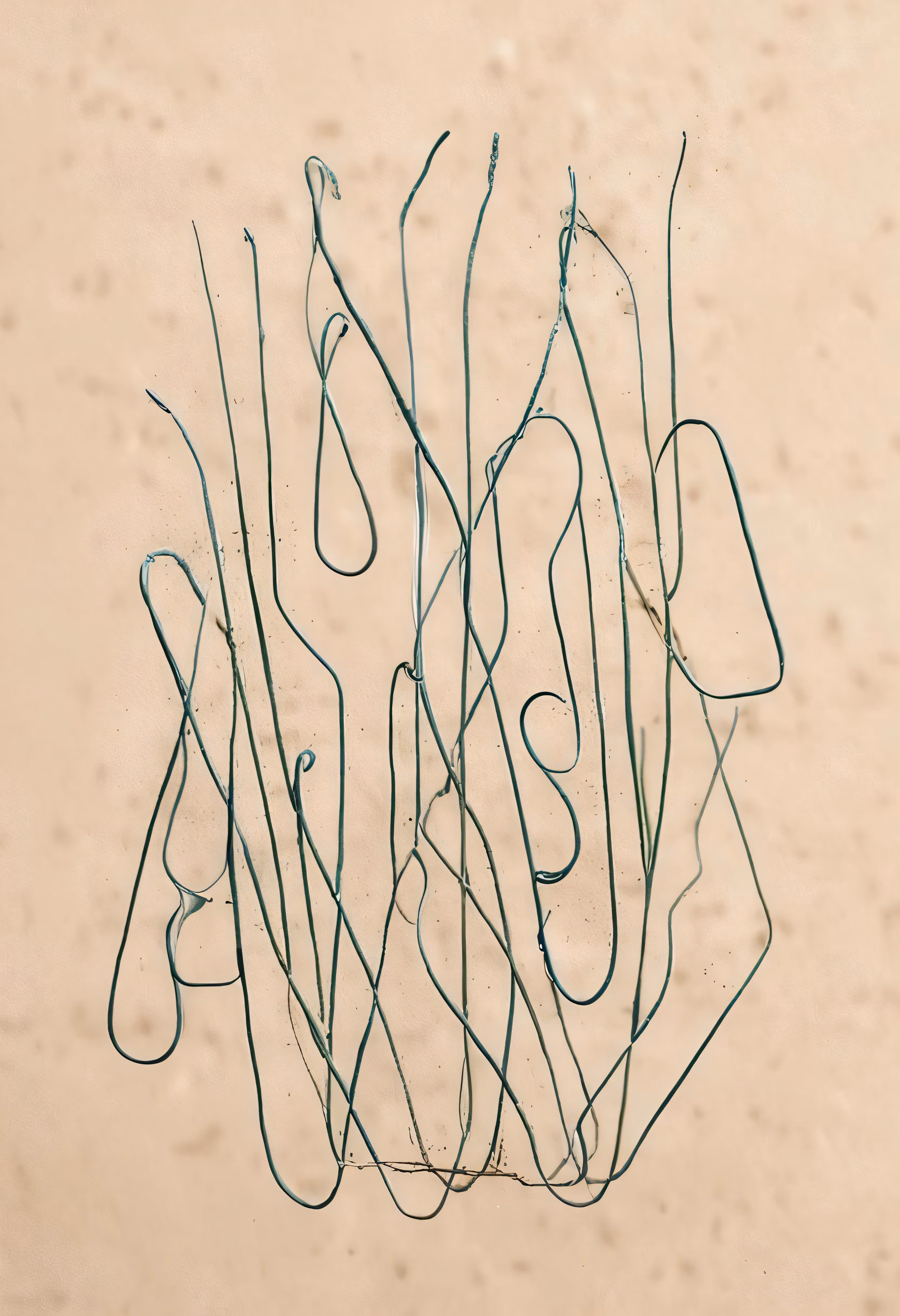 High resolution picture, free to use, several thin metal objects laying on the sand