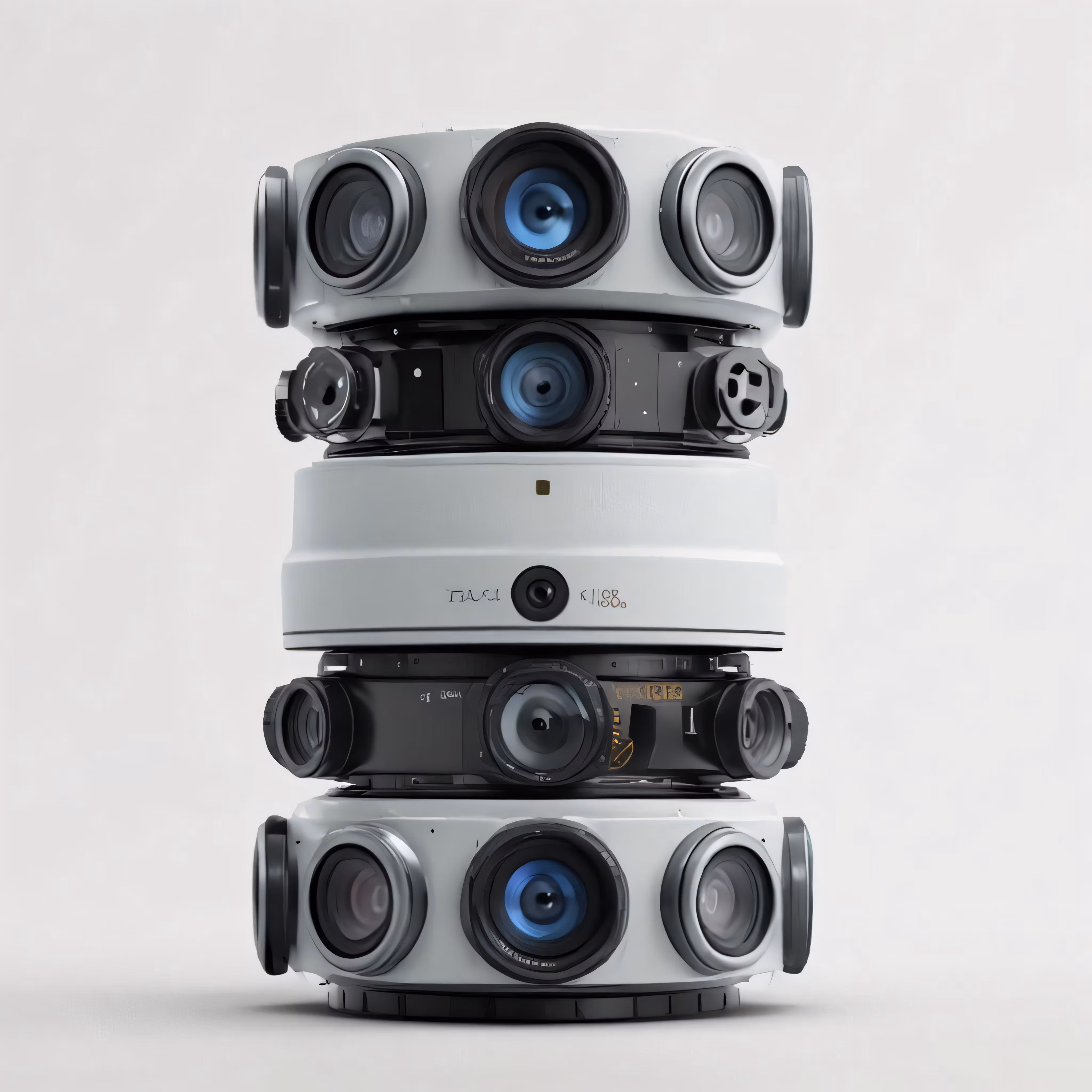 High resolution picture, free to use, six camera lenses stacked on top of each other