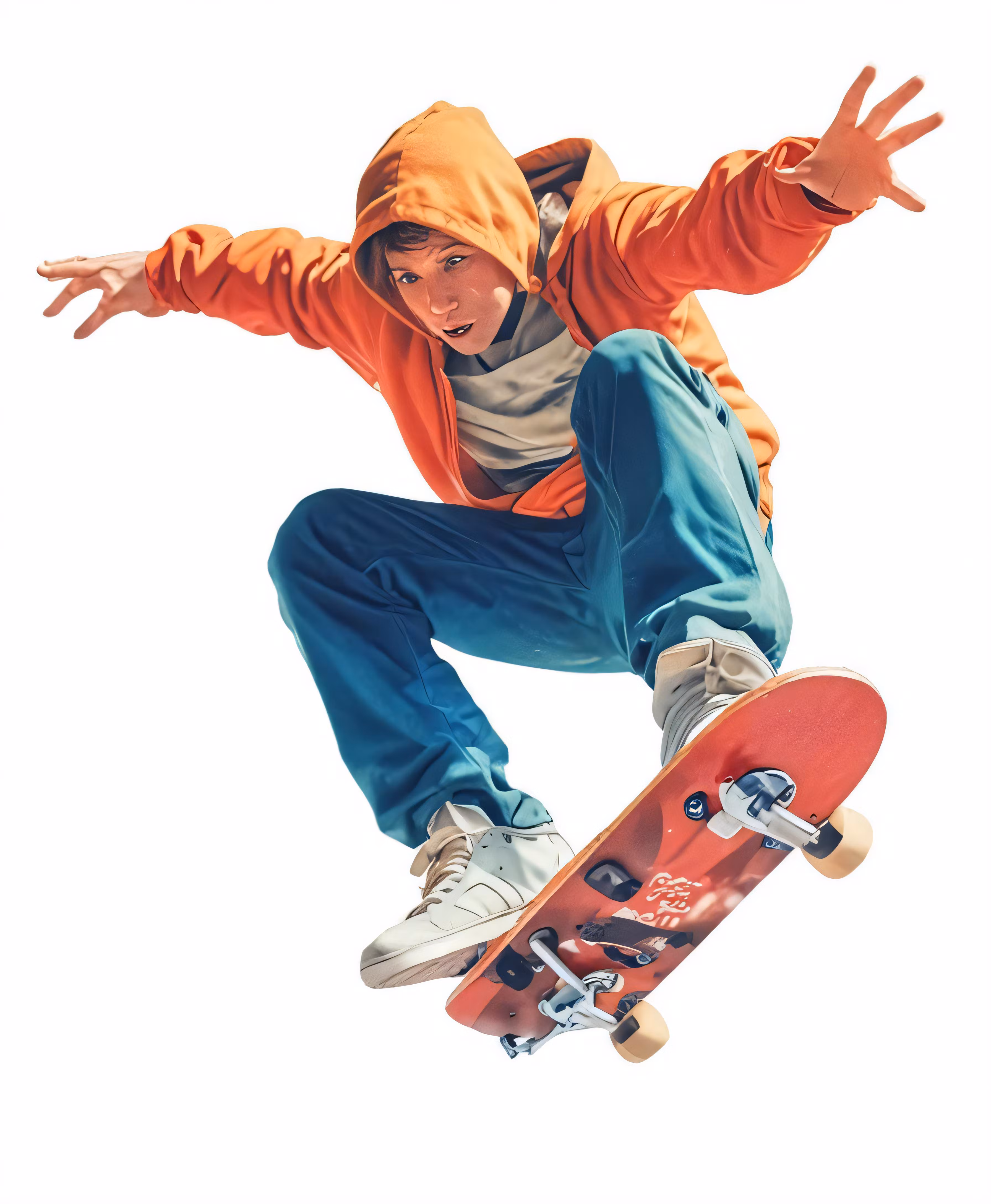 High resolution picture, free to use, skateboarder in the air doing a trick on his board