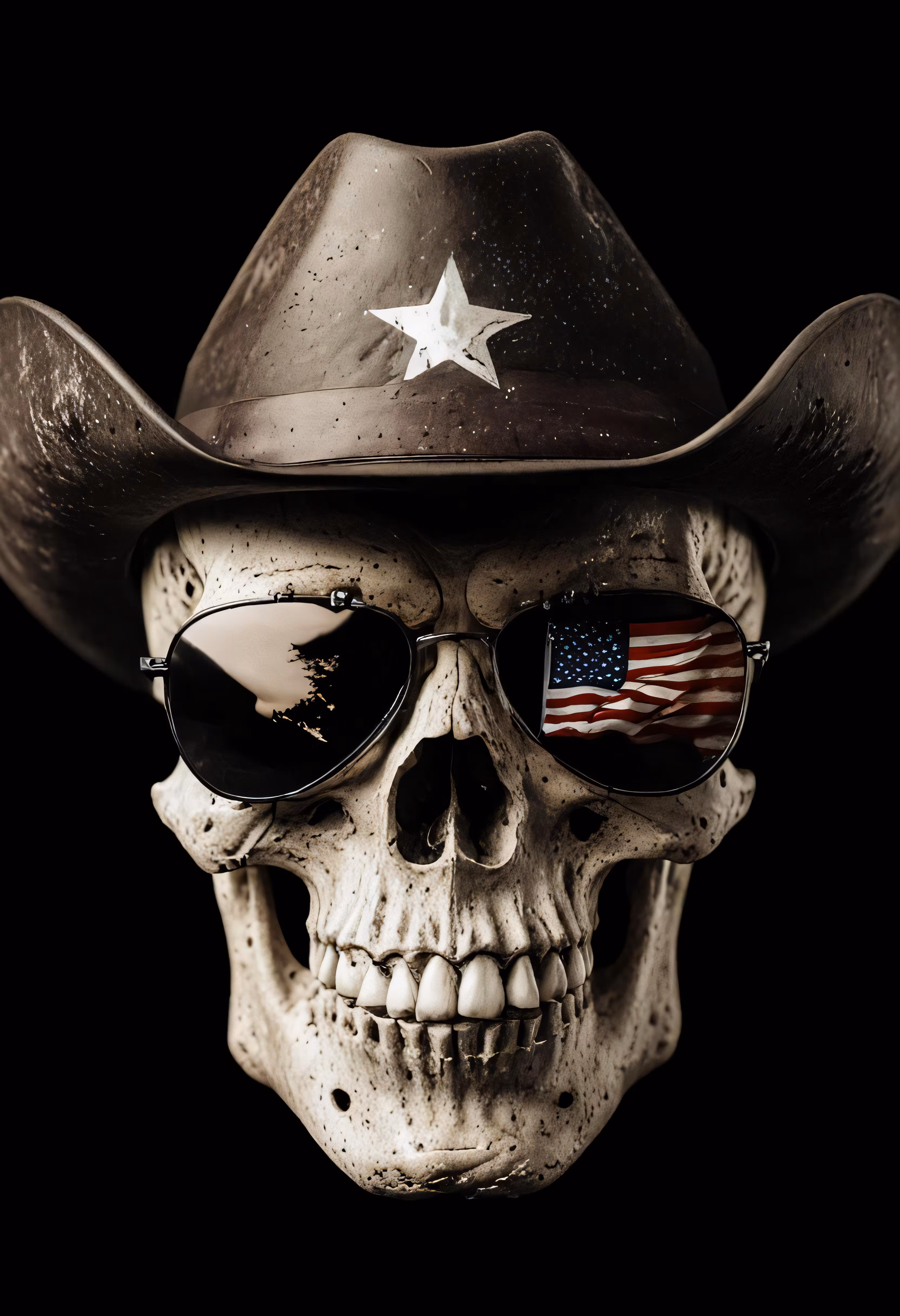 High resolution picture, free to use, skull with usa flag glasses and western hat