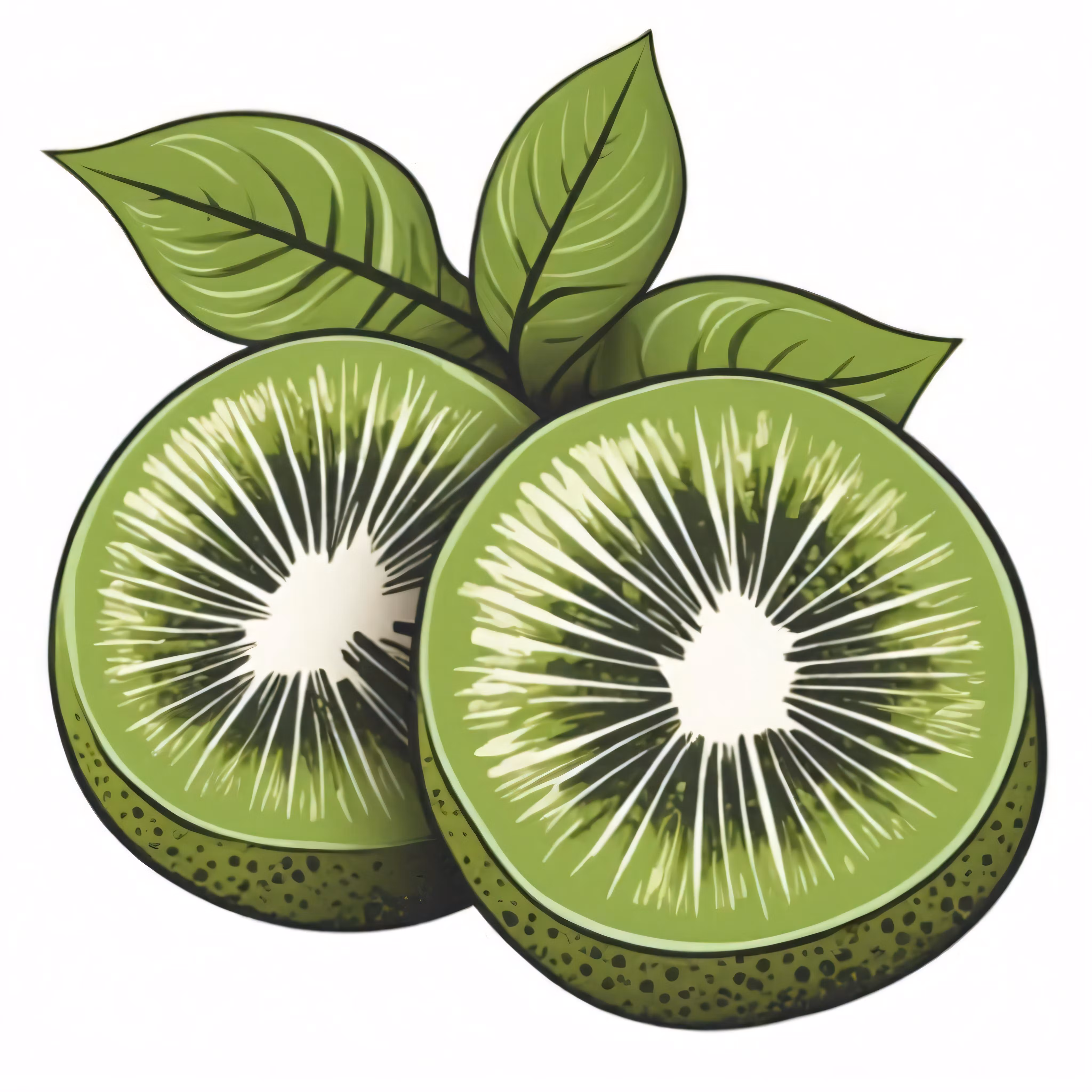 High resolution picture, free to use, sliced kiwi with leaf and slices on white background