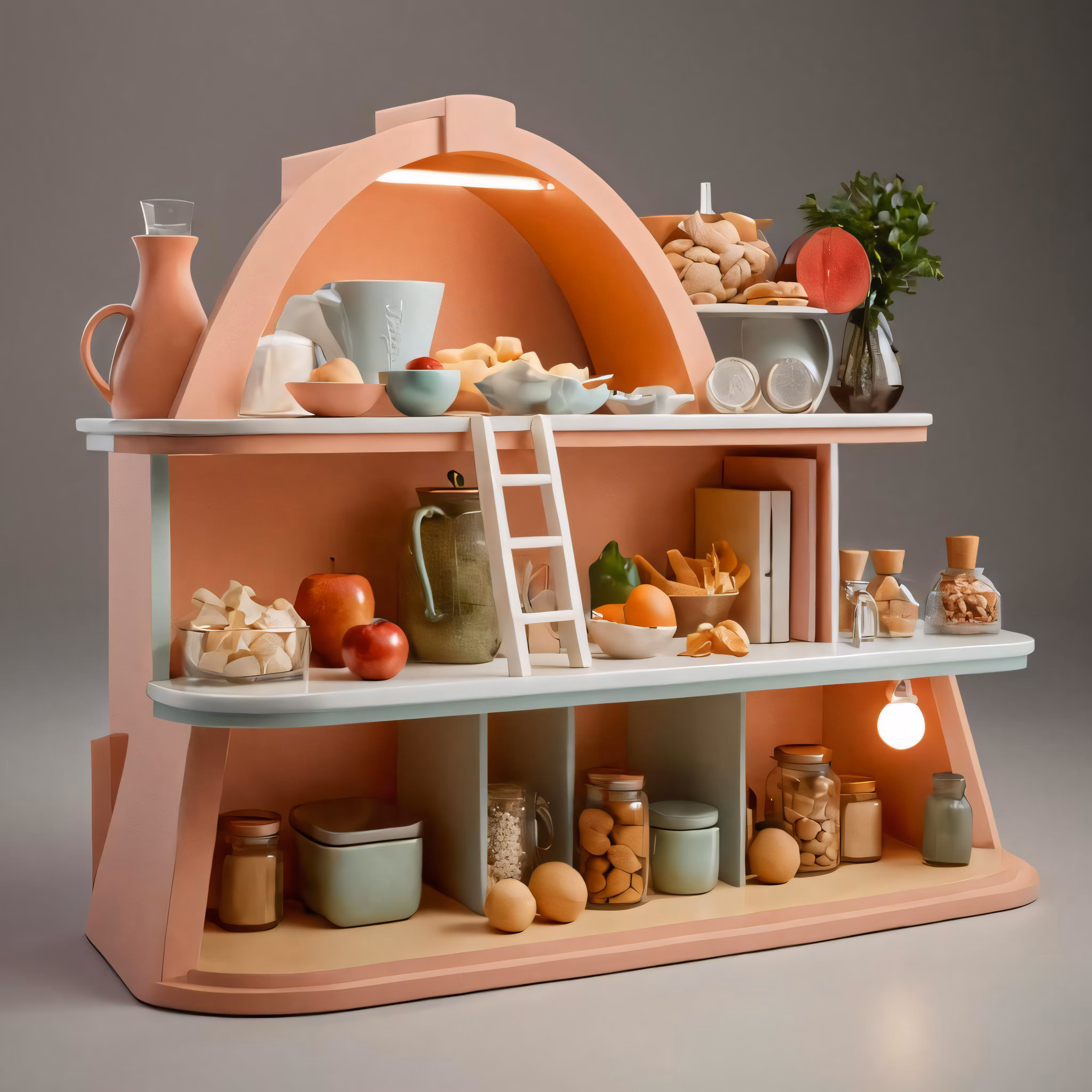 High resolution picture, free to use, small display shelves with a painted orange wall