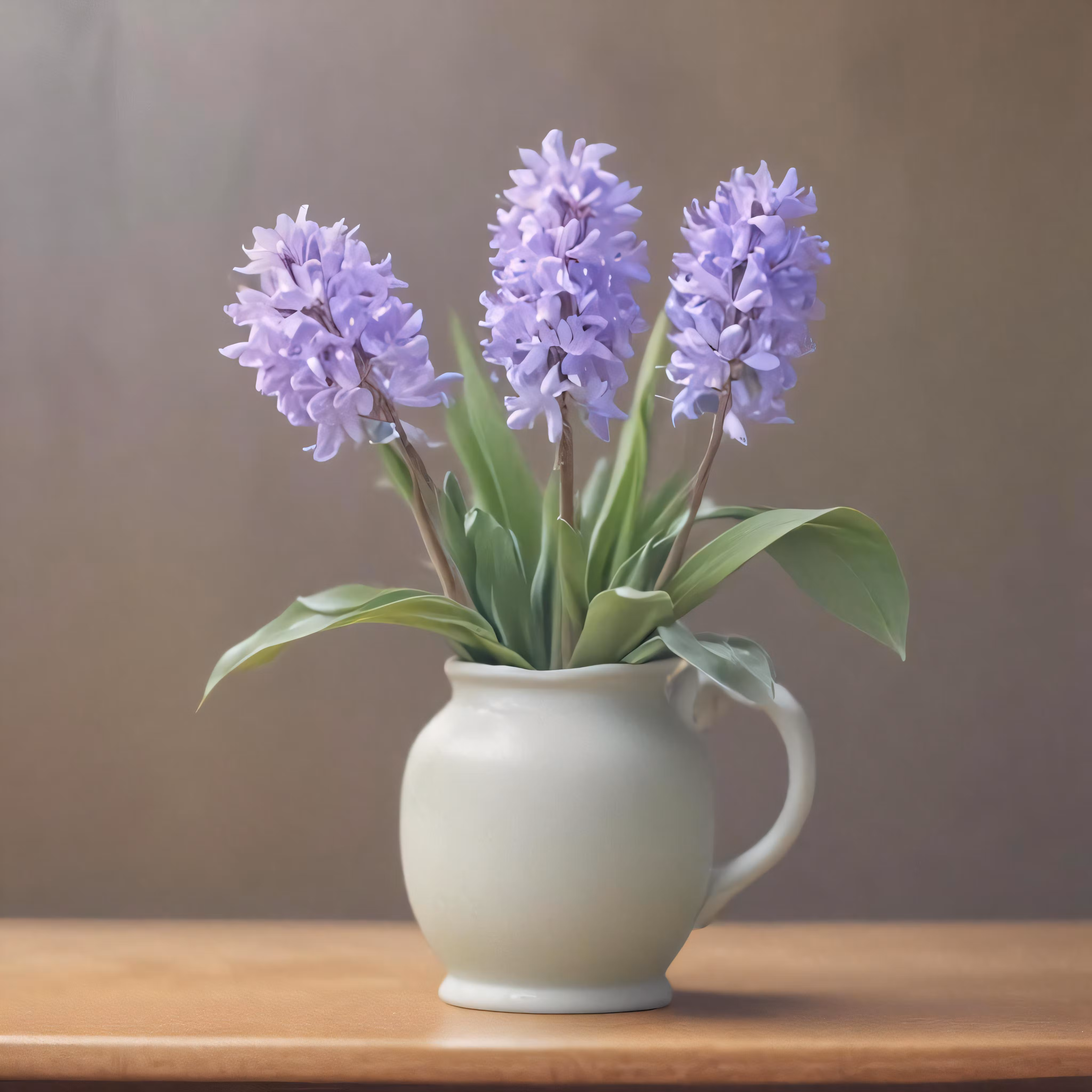 High resolution picture, free to use, small lavender flowers in a white jug on a table