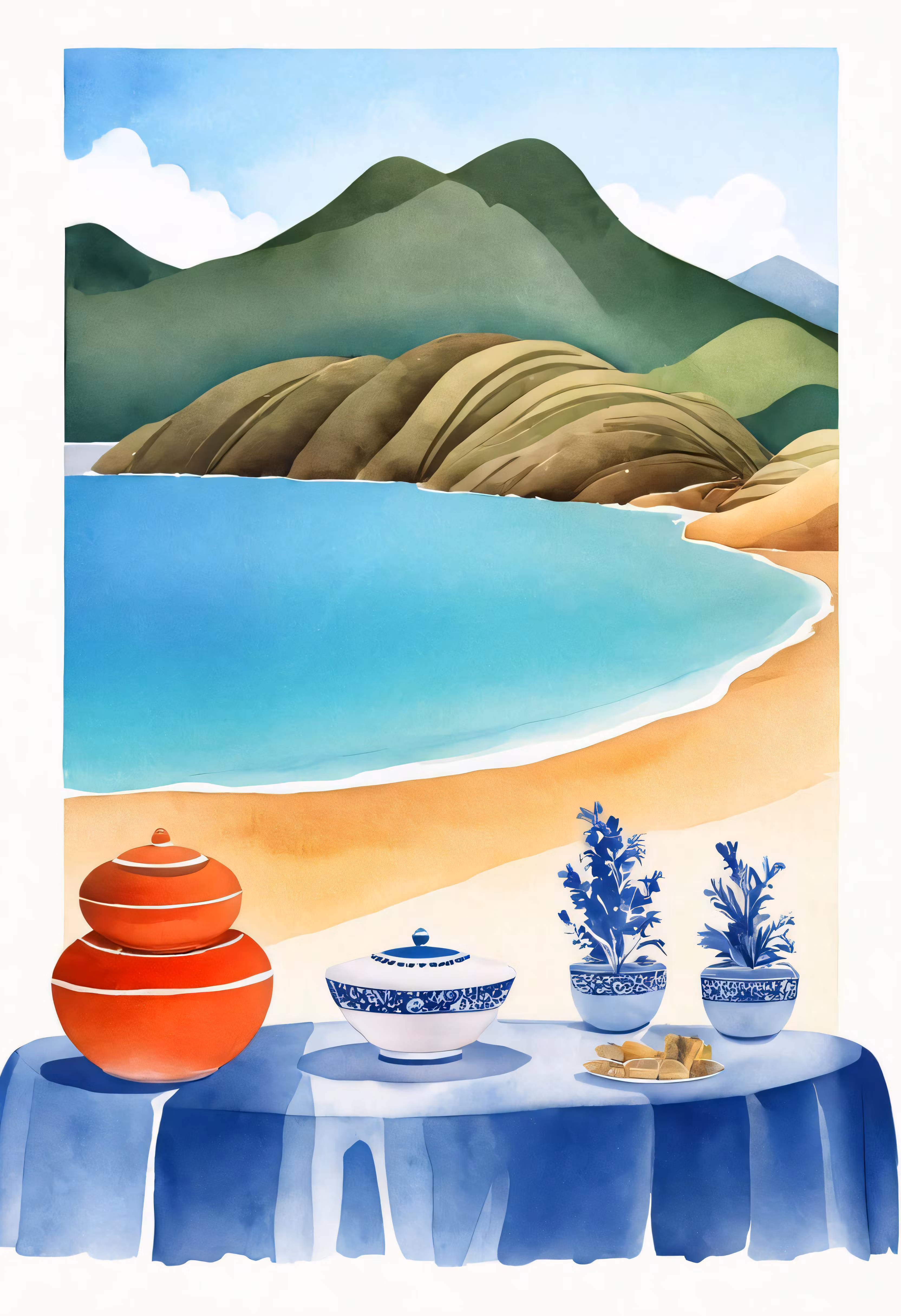 High resolution picture, free to use, some blue and white plates and vases are on a table