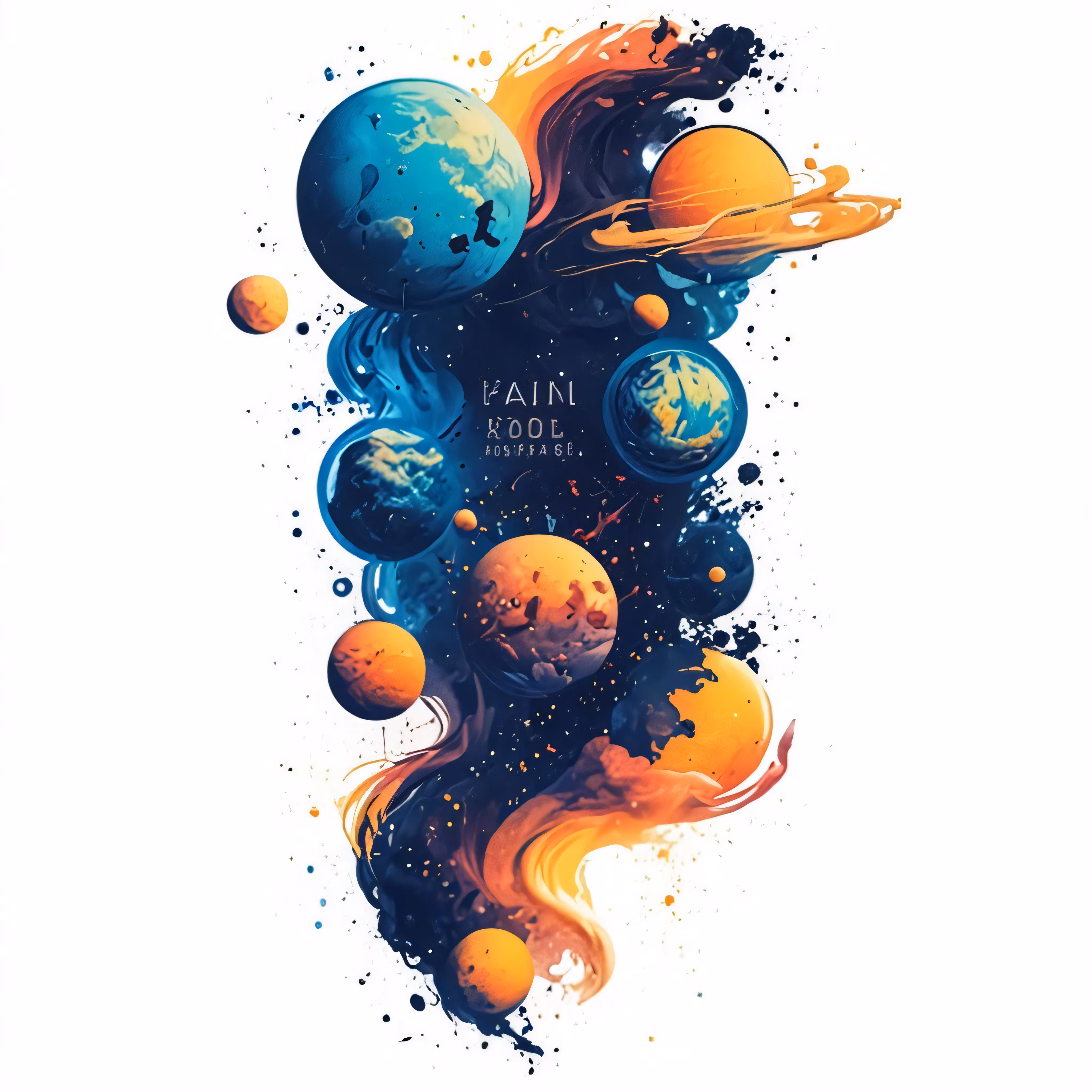 High resolution picture, free to use, some blue orange and yellow planets in space