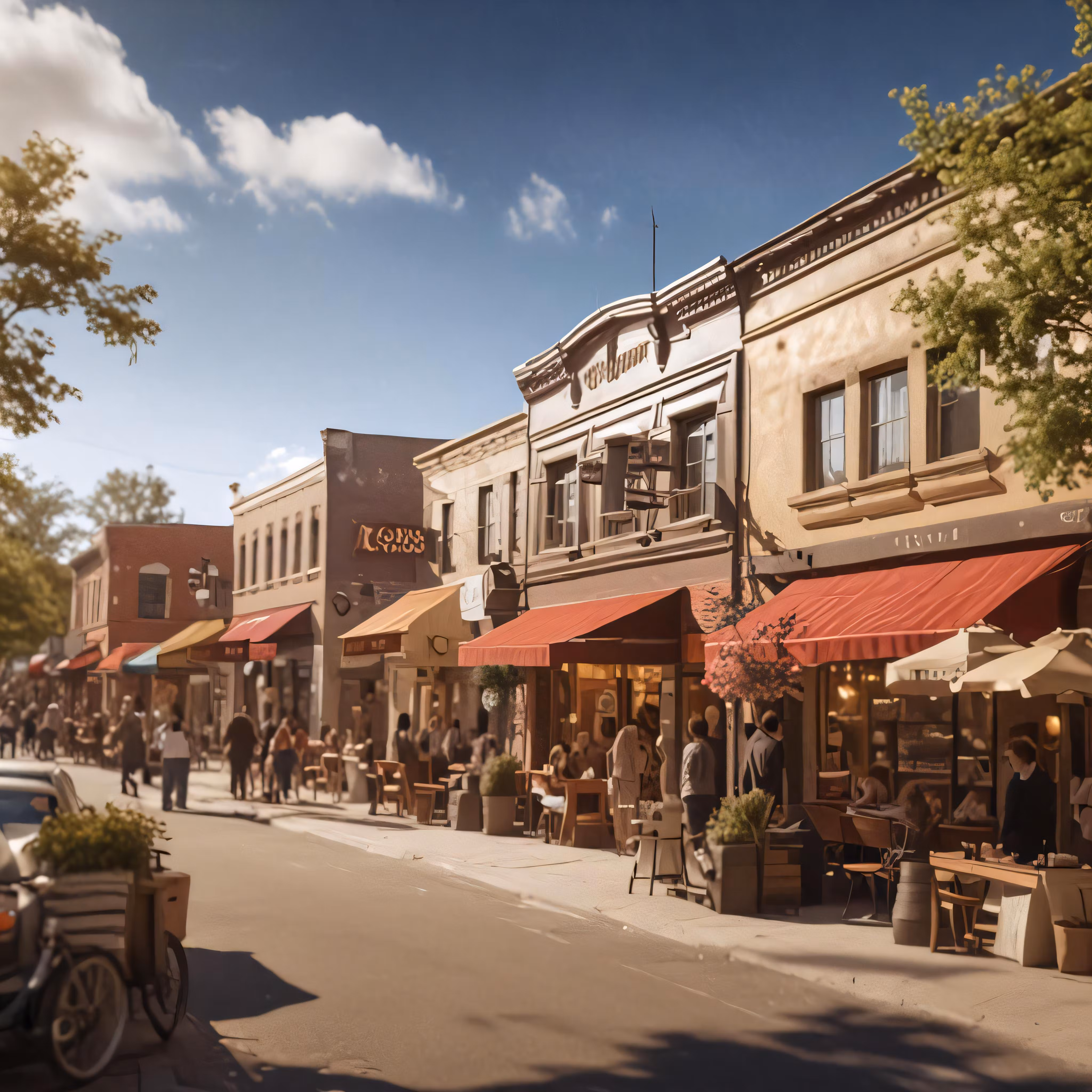 High resolution picture, free to use, some buildings that have red awnings on the street