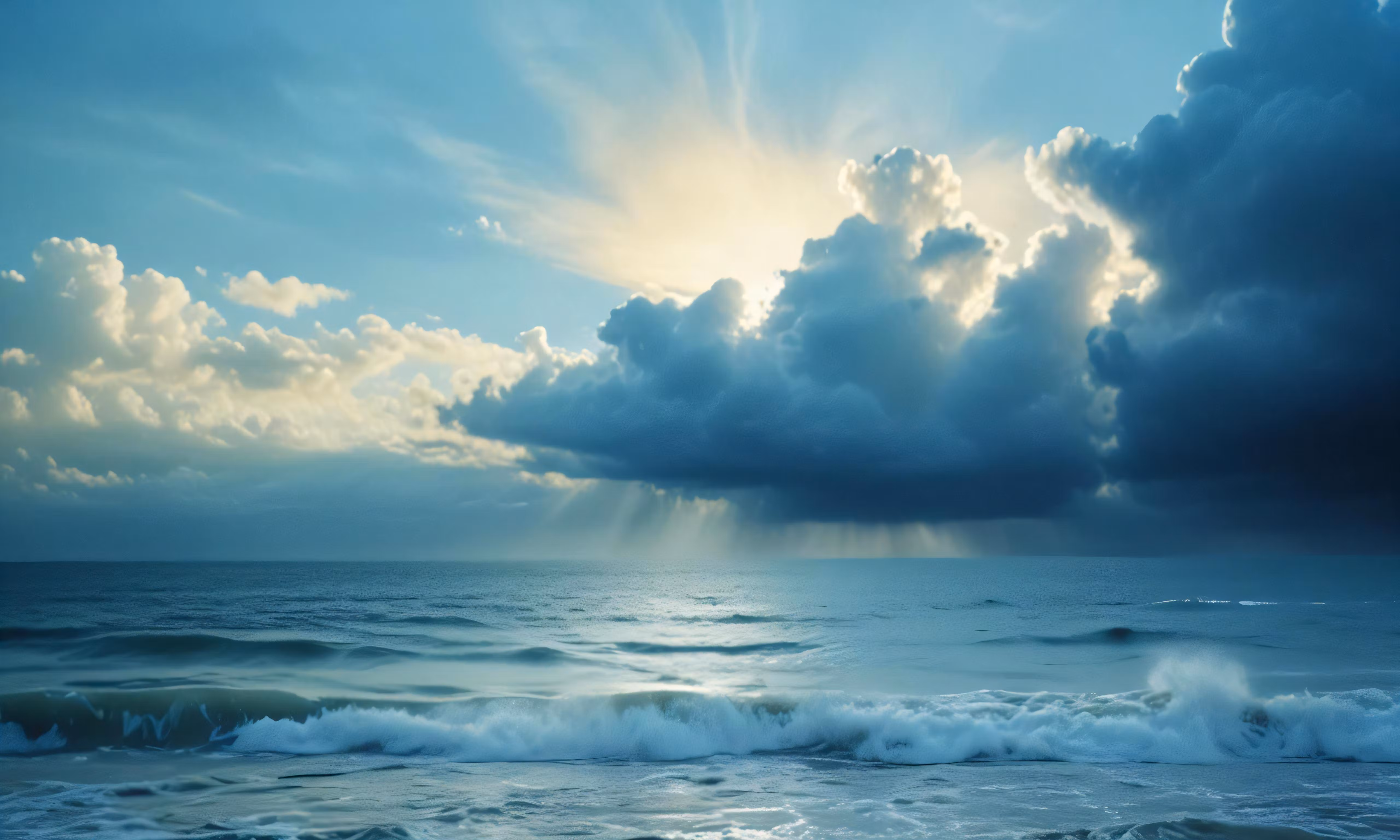 High resolution picture, free to use, some clouds are over an ocean with waves
